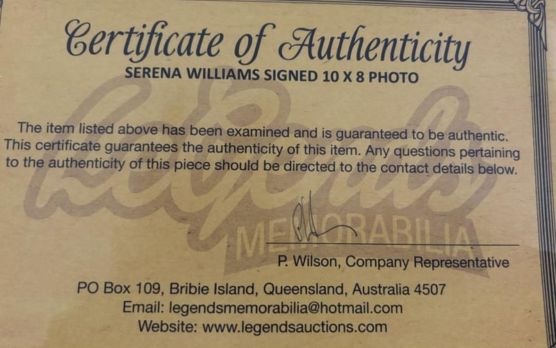 Serena Williams Personally Signed 10 X 8 Photograph. The Item Is Accompanied By A Certificate Of Authenticity.