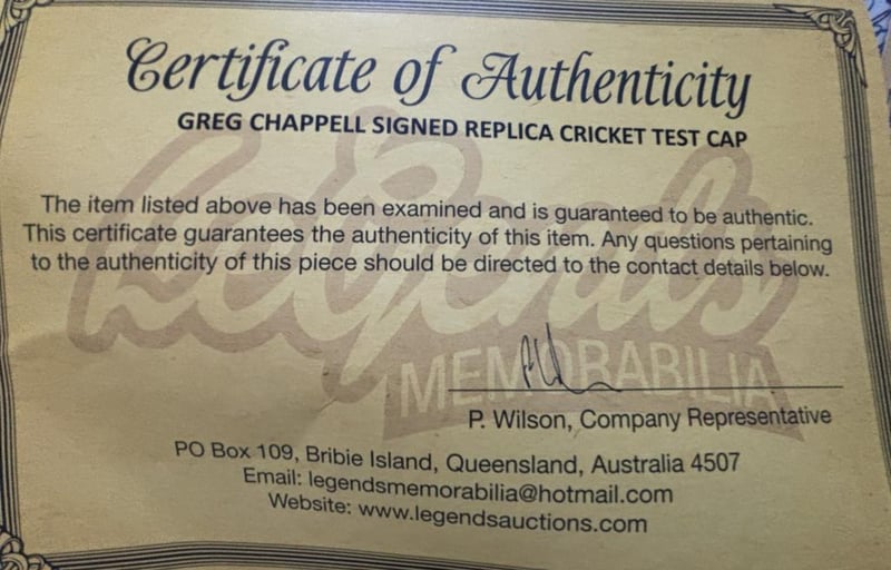 Greg Chappell Personally Signed Replica Australian Cricket Test Cap. The Item Is Accompanied By A Certificate Of Authenticity.
