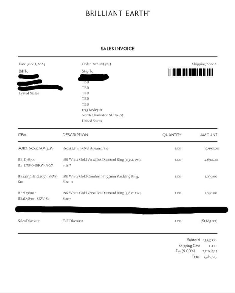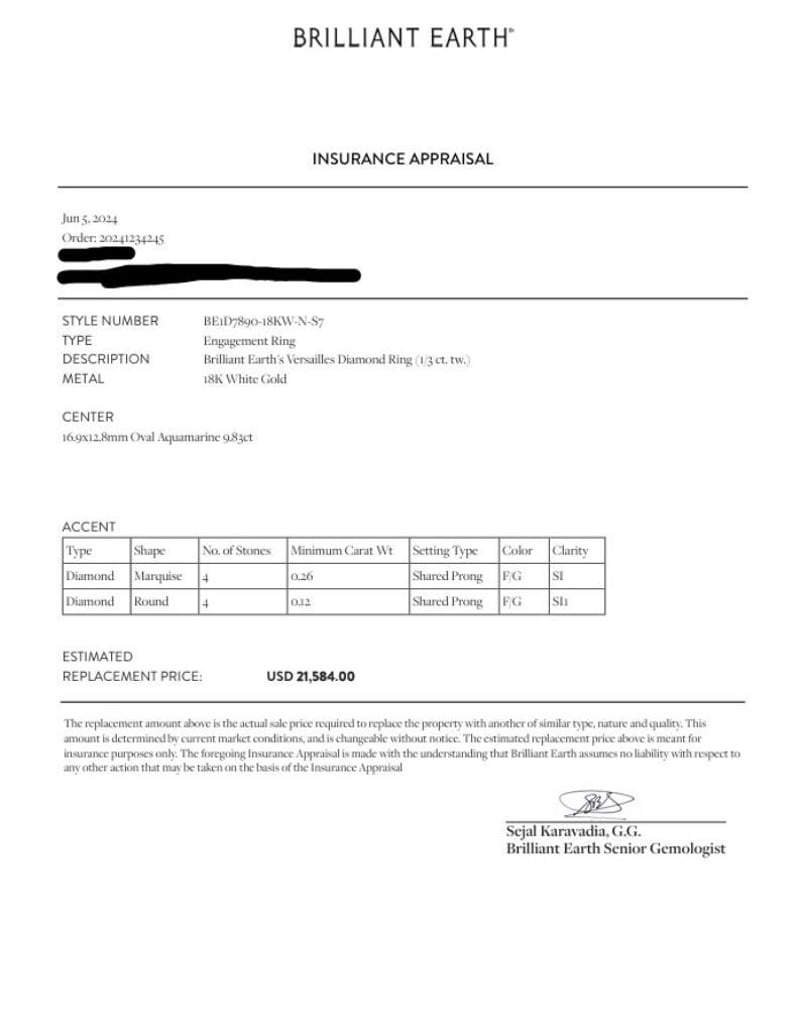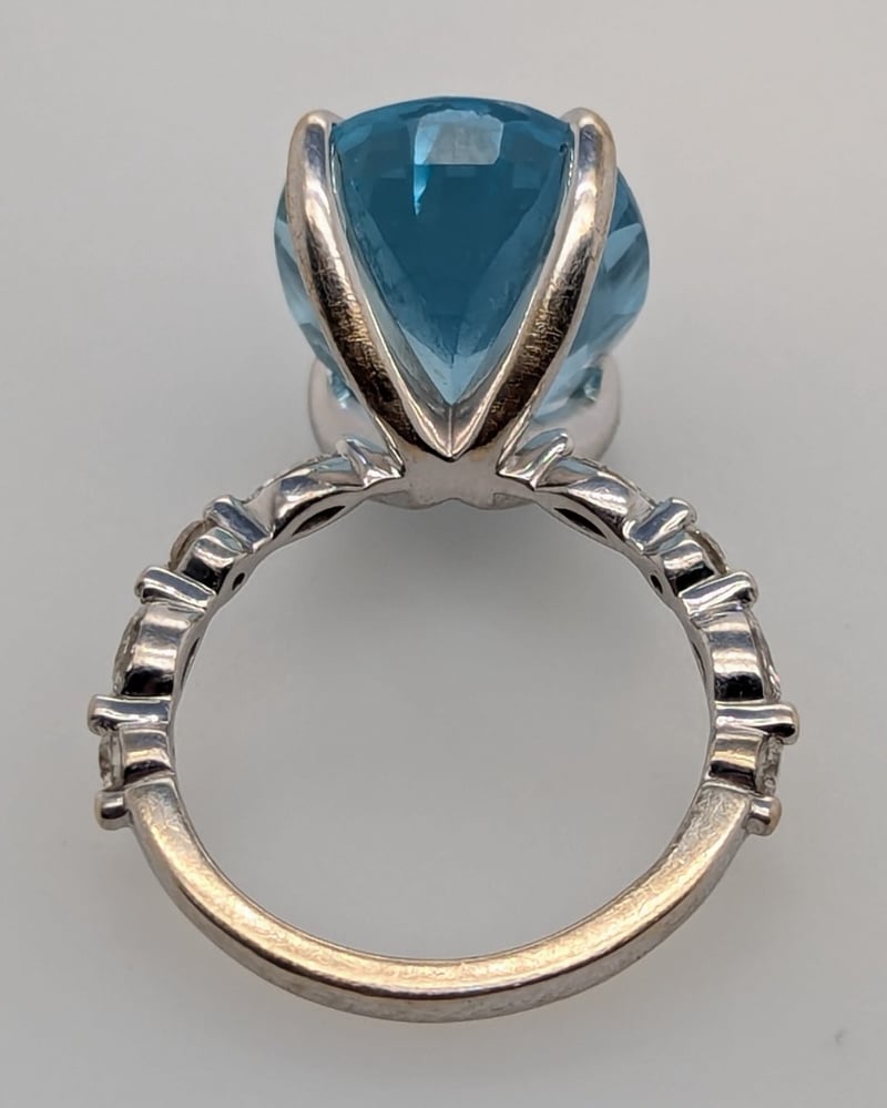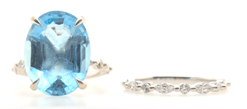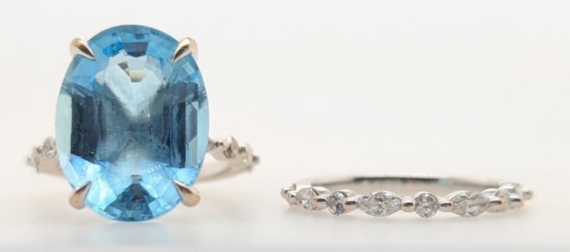 CUSTOM MADE 18K WHITE GOLD AQAUAMARINJE AND DIAMOND RING SET