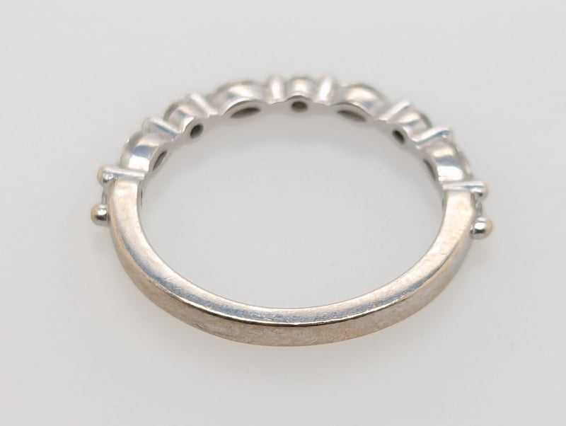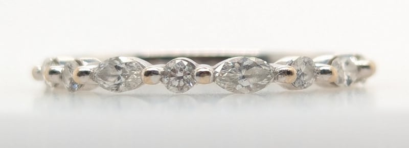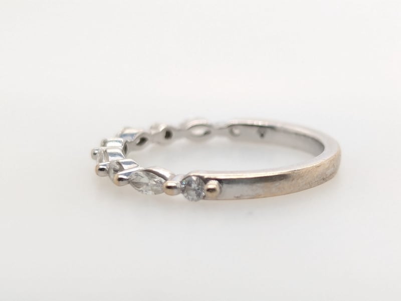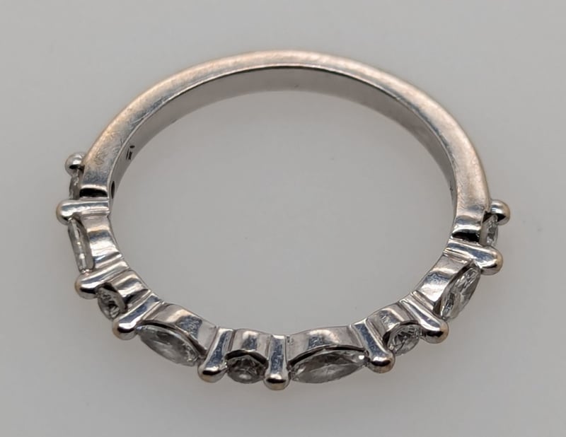 Second Ring Features Five Round Cut White Diamonds And Four Marquise Cut White Diamonds Set Along Ring Band In Two Claw Settings