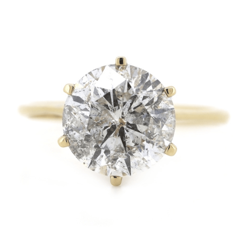 The Centre Features, One Round Brilliant Cut, Diamond (3.53Ct, J Colour, P3 Clarity), 6 Claw Set. Ring Size N.