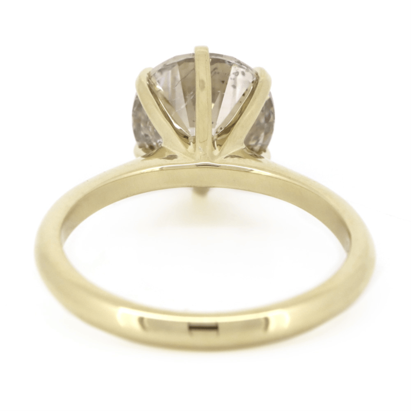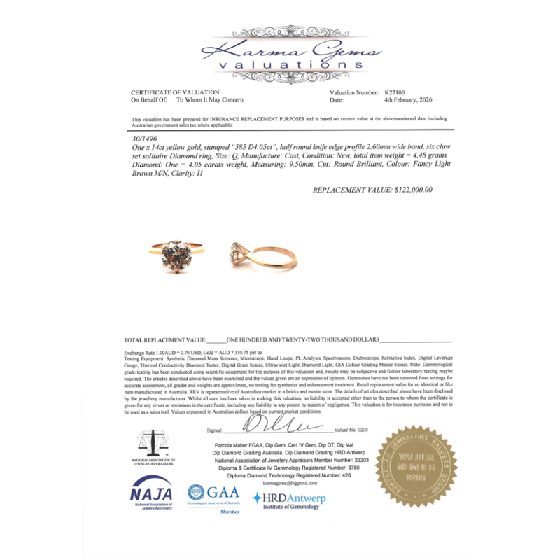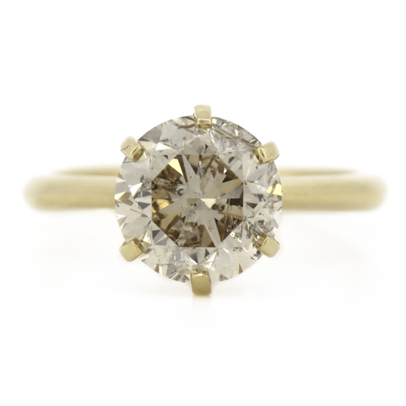 The Centre Features, One Round Brilliant Cut, Fancy Light Brown, Diamond (4.05Ct, I1 Clarity), 6 Claw Set. Ring Size Q.