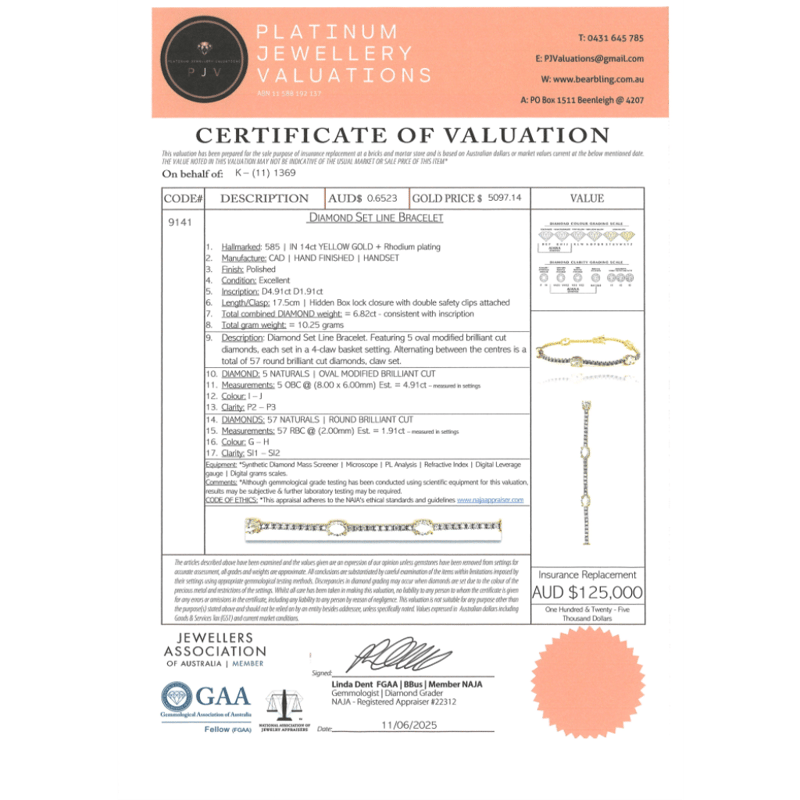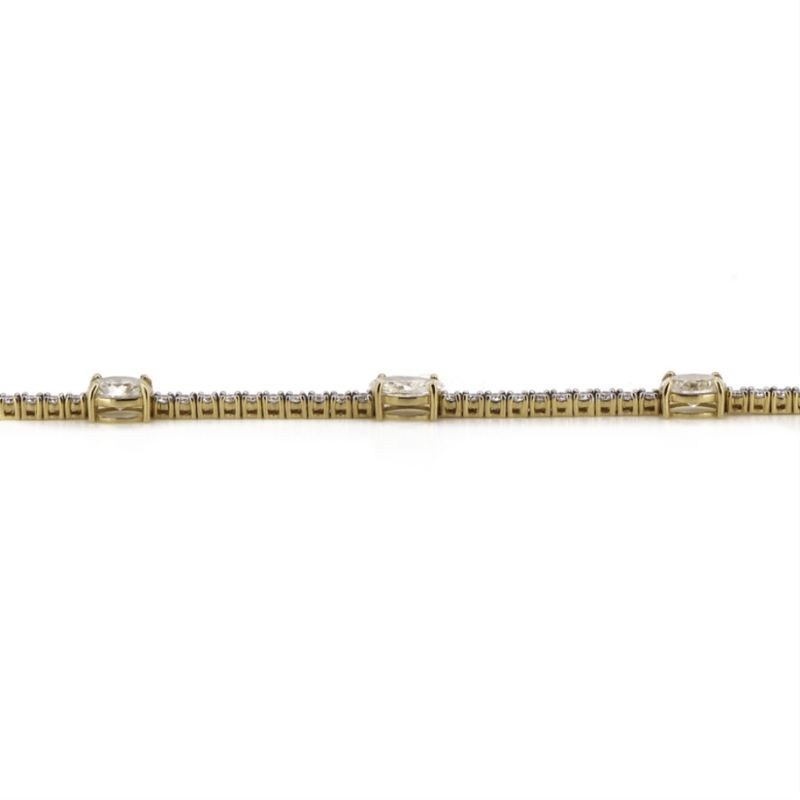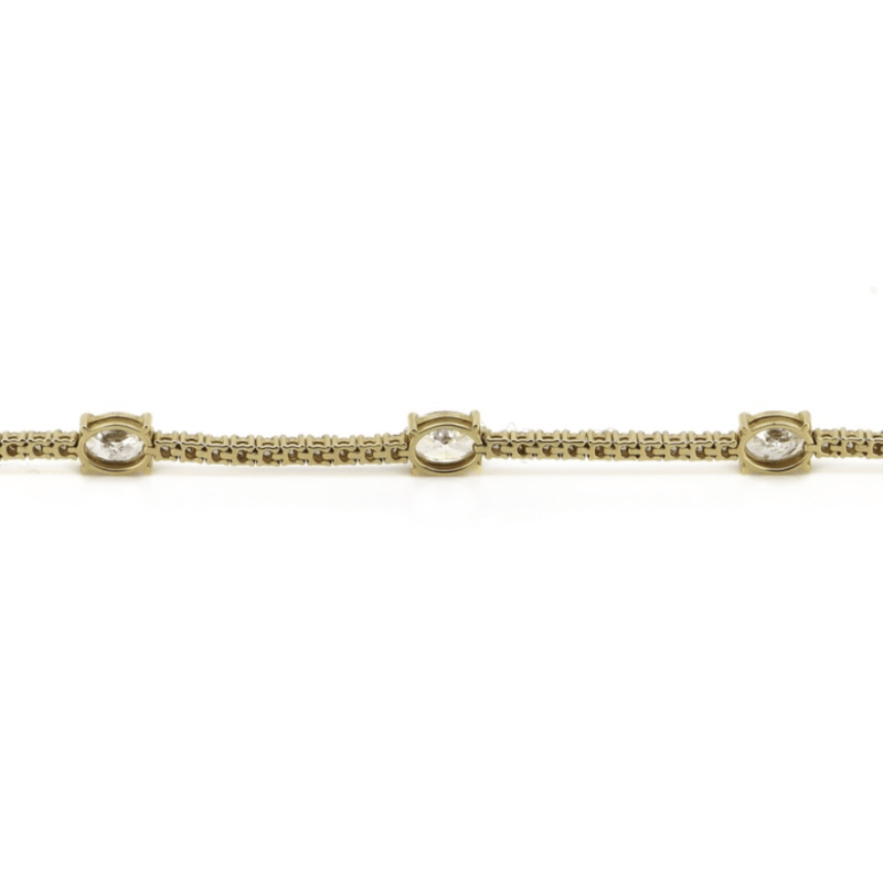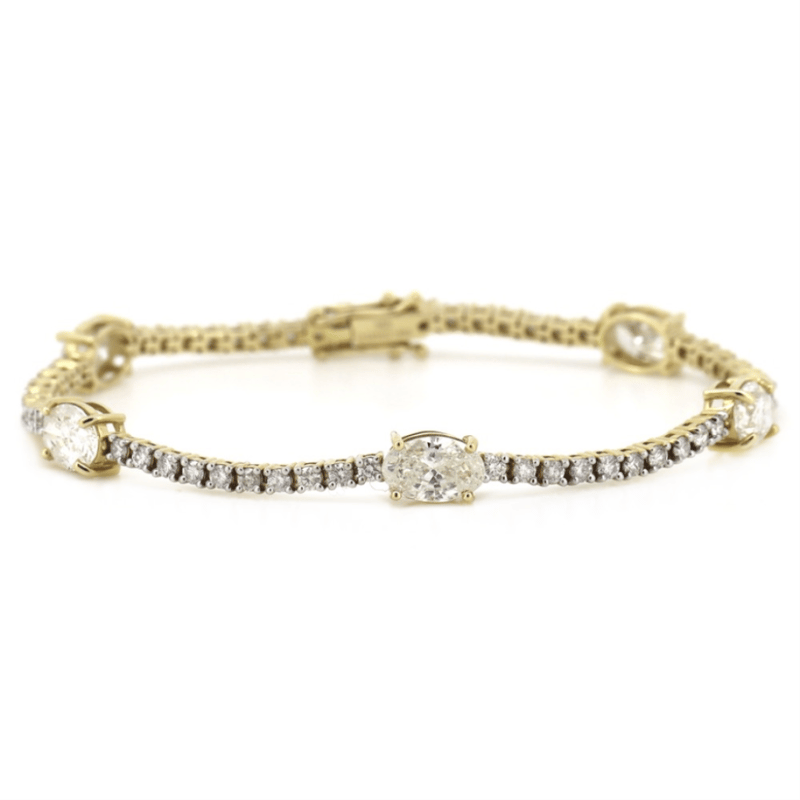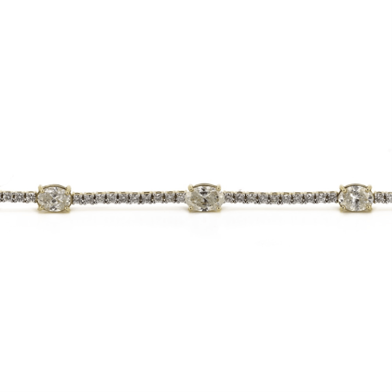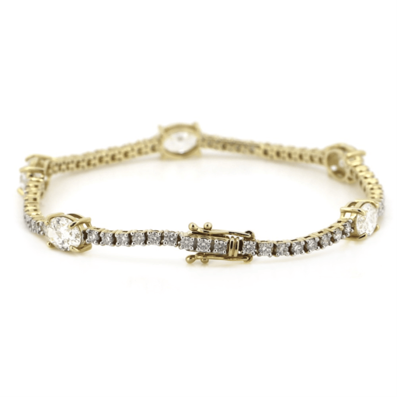 The Design Features, 5 Oval Brilliant Cut, Diamonds (4.91Ct Tdw, I-J Colour, P2-P3 Clarity), Claw Set. Alternating Between Are, 57 Round Brilliant Cut, Diamonds (1.91Ct Tdw, G-H Colour, Si1-Si2 Clarity), Claw Set. The Bracelet Has A Hidden Box Lock Closure With 2 Safety Clips. Bracelet Length Is 17.50Cm.