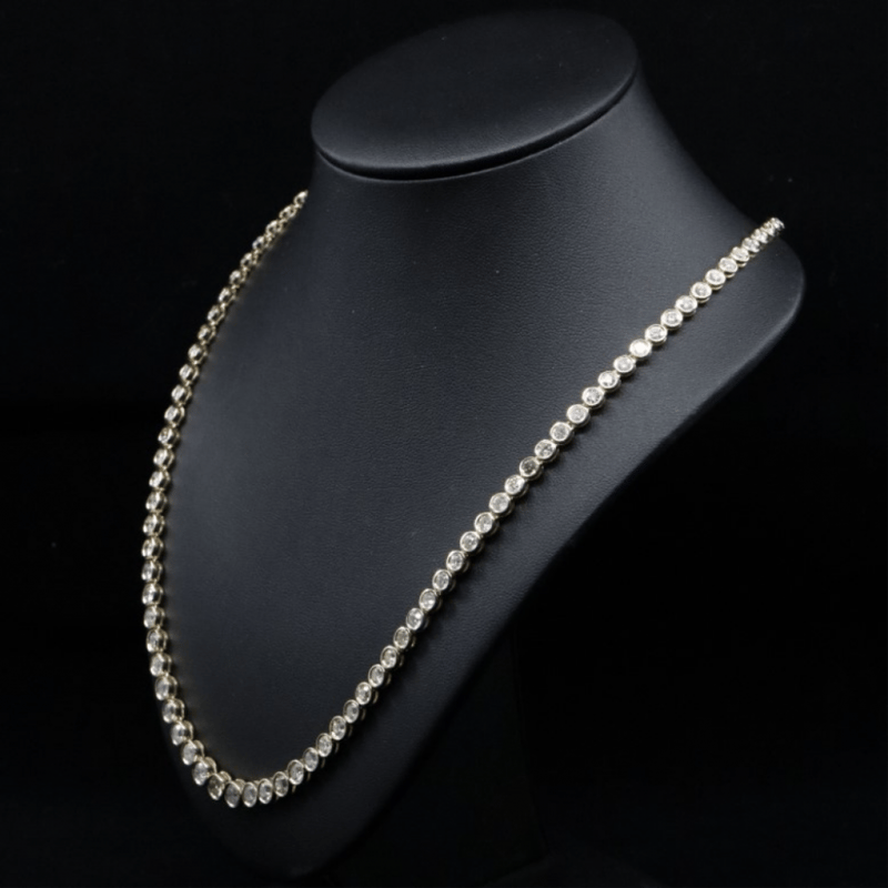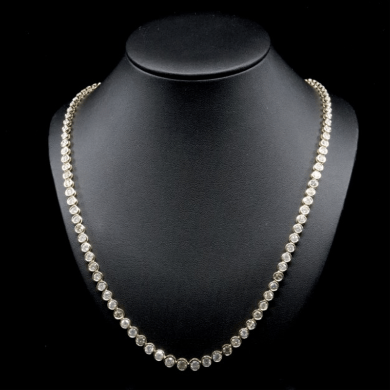 The Design Features 105 Round Brilliant Cut Diamonds (14.86Ct Tdw, Colour, Clarity), Bezel Set. The Necklace Has A Box Clasp And A Safety Latch. Necklace Length Is 50Cm.