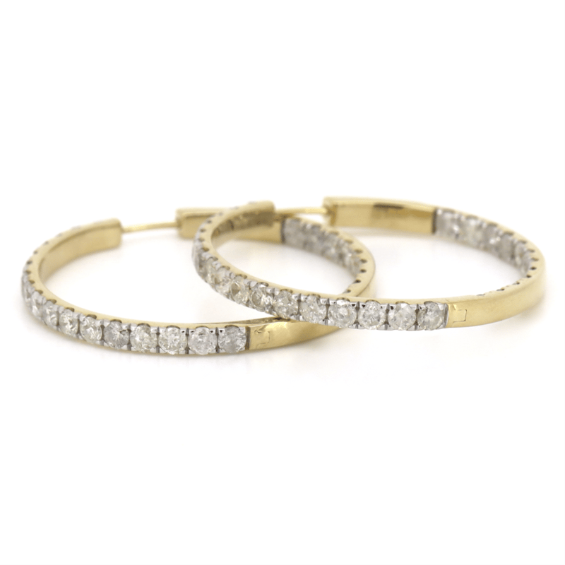 The Hoops Feature, 32 Round Brilliant Cut, Diamonds (4.02Ct Tdw, H-J Colour, Si1-Si2 Clarity), 4 Claw Set. The Earrings Have Hinged Closures.