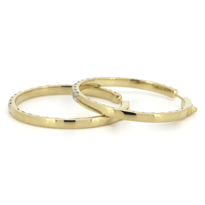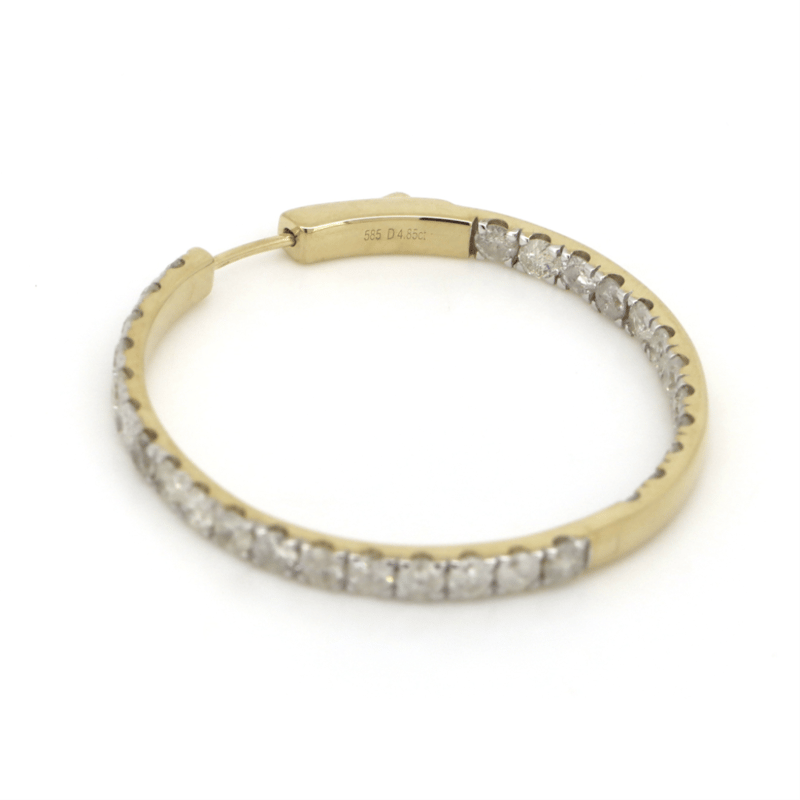 14K YELLOW GOLD, 4.02CT TDW DIAMOND, HOOP EARRINGS.