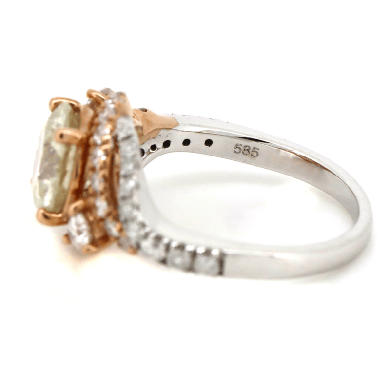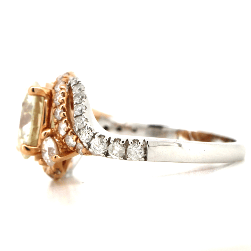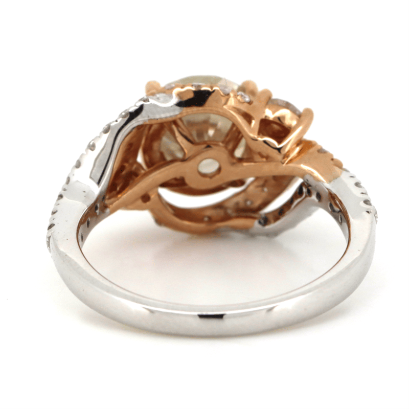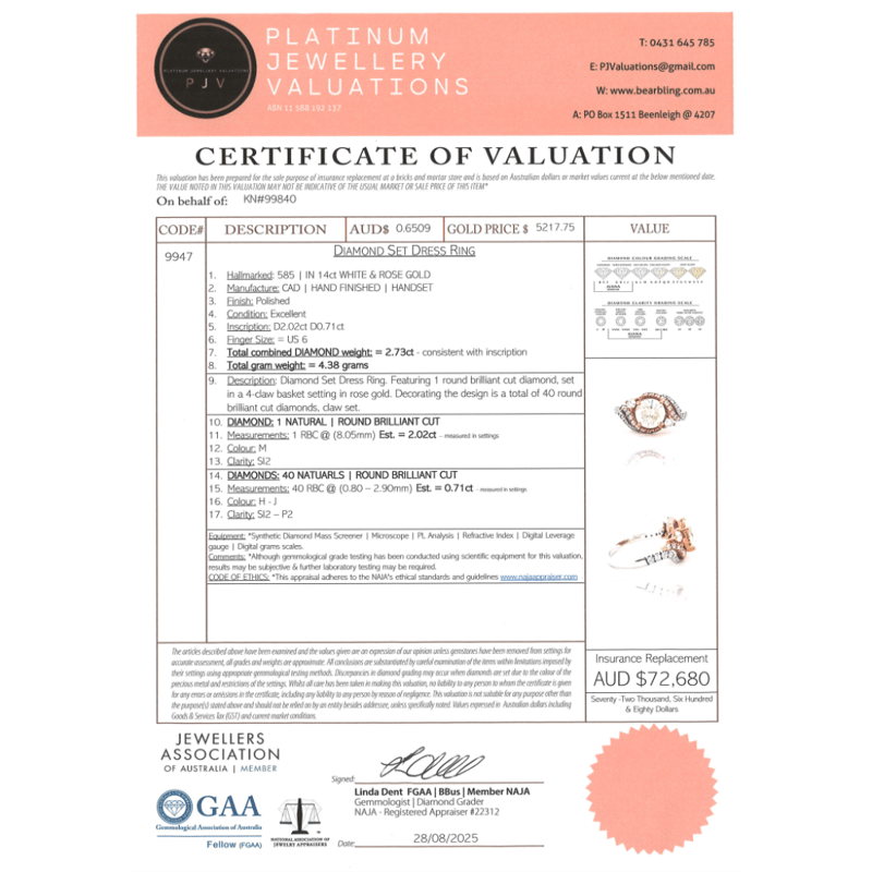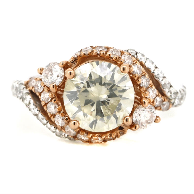 The Centre Features, One Round Brilliant Cut, Diamond (2.02Ct, M Colour, Si2 Clarity), Claw Set In Rose Gold. Encompassing The Design Are, 40 Round Brilliant Cut, Diamonds (0.71Ct Tdw, H-J Colour, Si2-P2 Clarity), Claw Set In Rose/White Gold. Ring Size L 1/2.