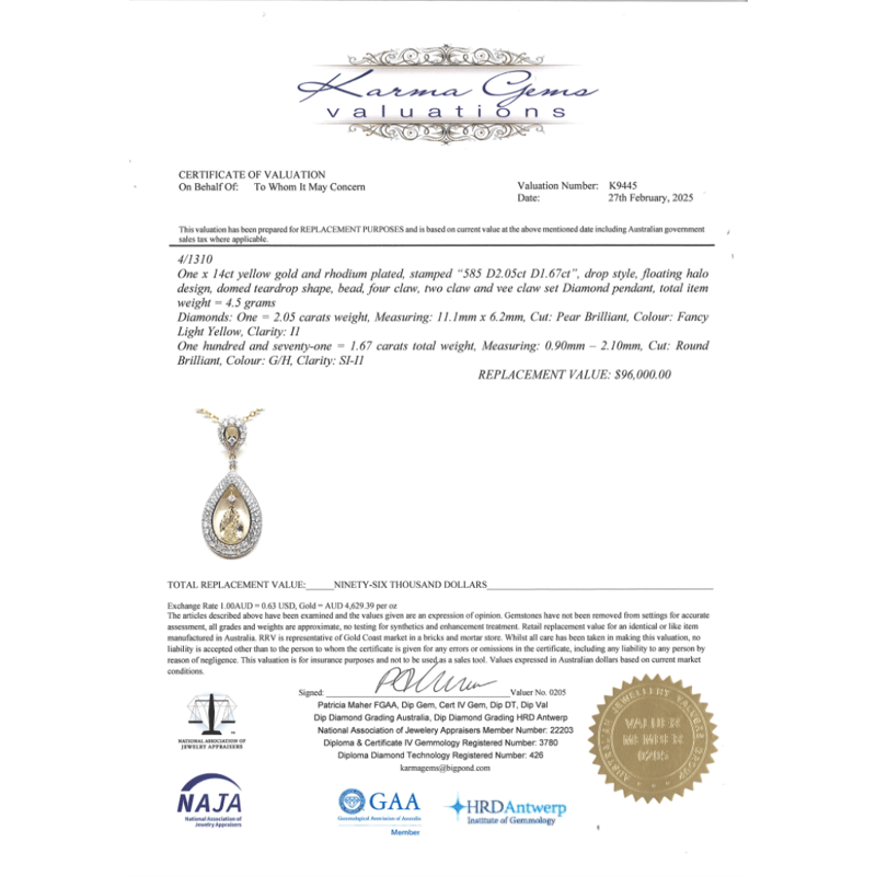 The Centre Features, One Pear Faceted Cut, Light Fancy Yellow, Diamond (2.05Ct, I1 Clarity), Claw Set. Encompassing The Design Are, 171 Round Brilliant Cut, Diamonds (1.67Ct Tdw, G-H Colour, Si-I1 Clarity), Claw Set.