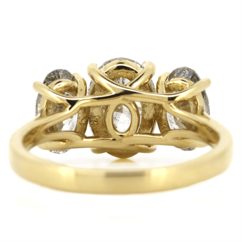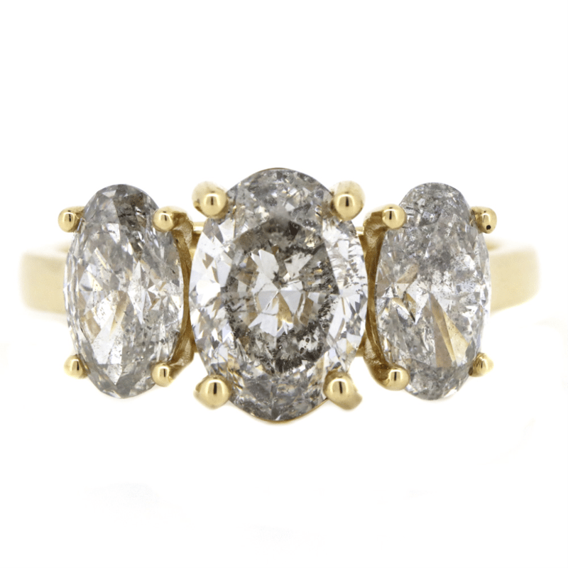 The Centre Features, One Oval Faceted Cut, Diamond (1.90Ct, H-I Colour, I2 Clarity), 4 Claw Set. Flanking Either Side Of The Centre Are, 2 Oval Faceted Cut, Diamonds (1.97Ct Tdw, H-I Colour, I Clarity), Claw Set. Ring Size P.