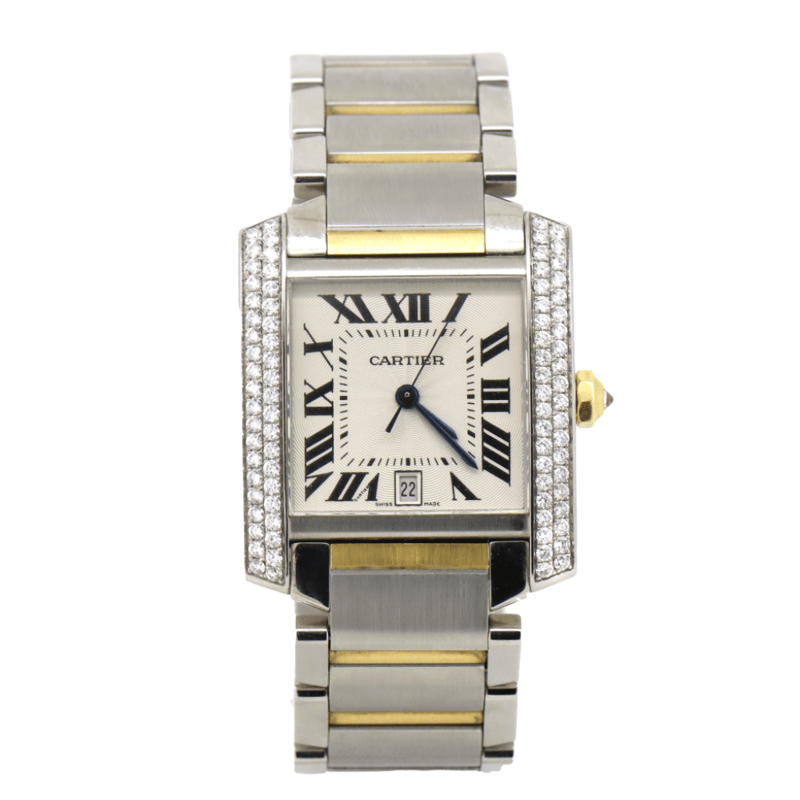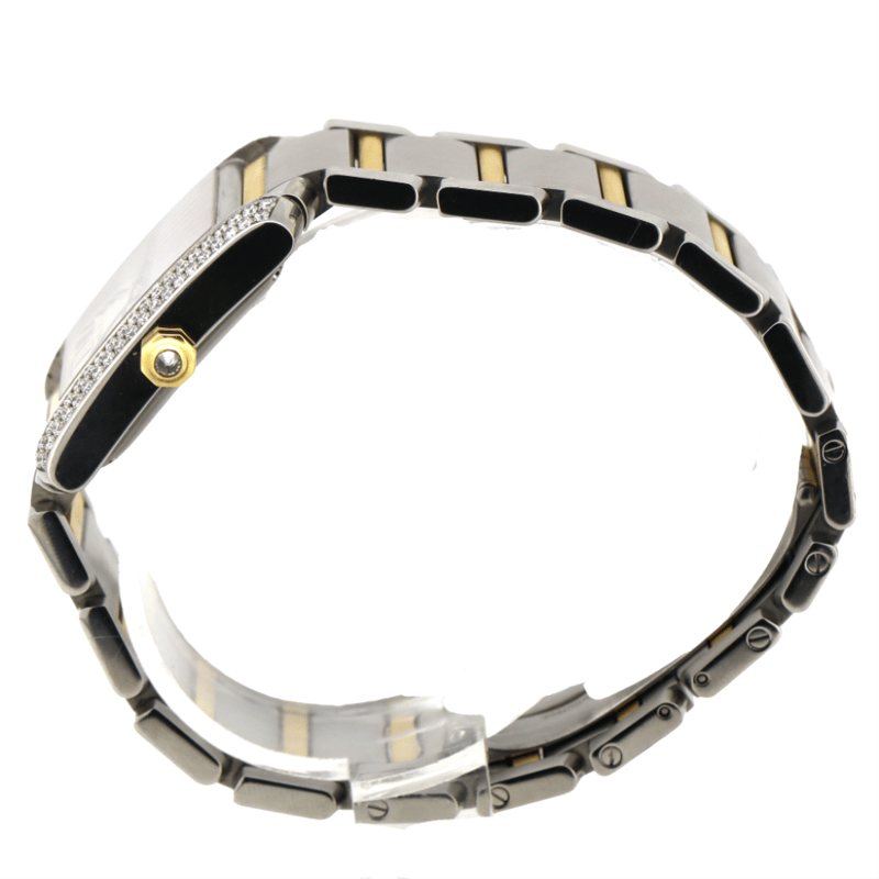 CARTIER TANK, DIAMOND ENCRUSTED WATCH, 30MM. TWO TONE, WITH DIAMONDS ENCOMPASSING