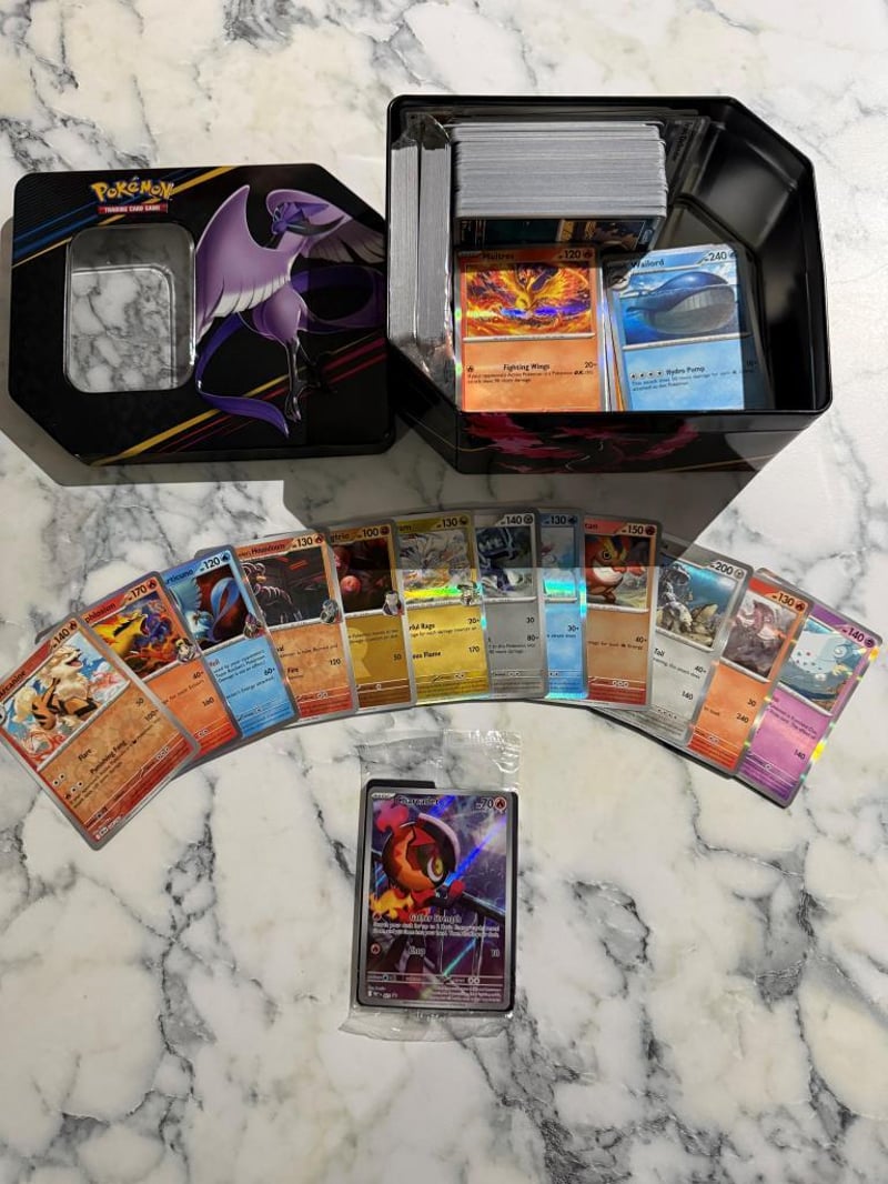 Assorted Bulk Pokemon Cards Including Reverse Holos, Over 300 Cards Included In Collectors Tin