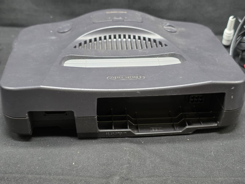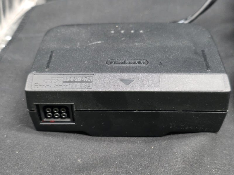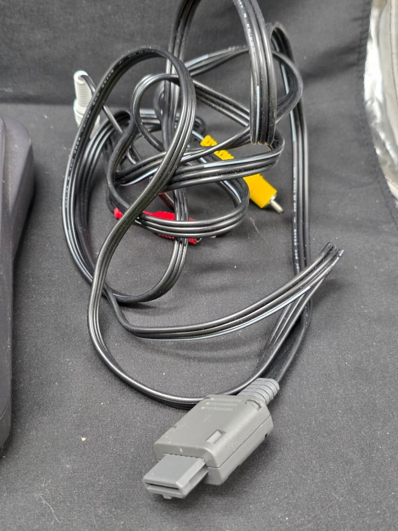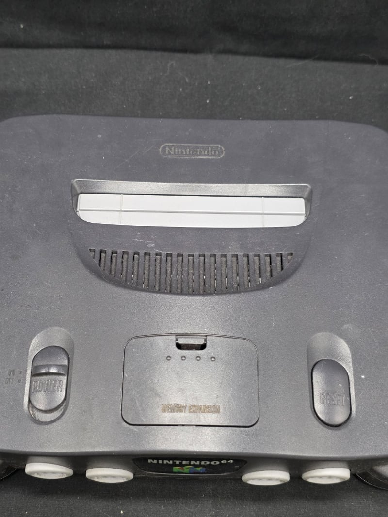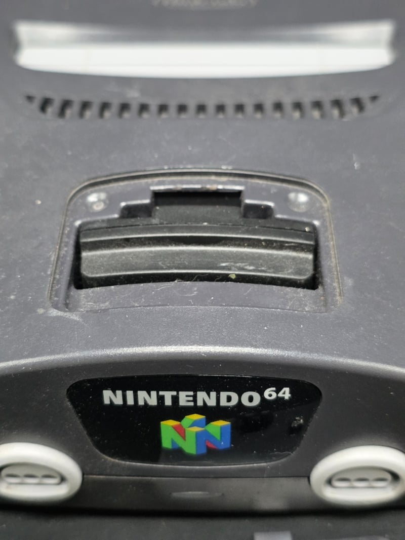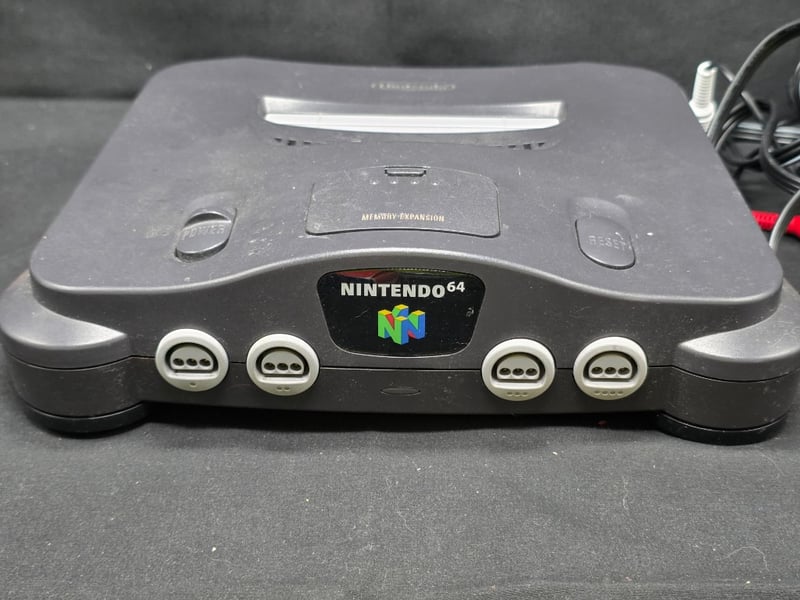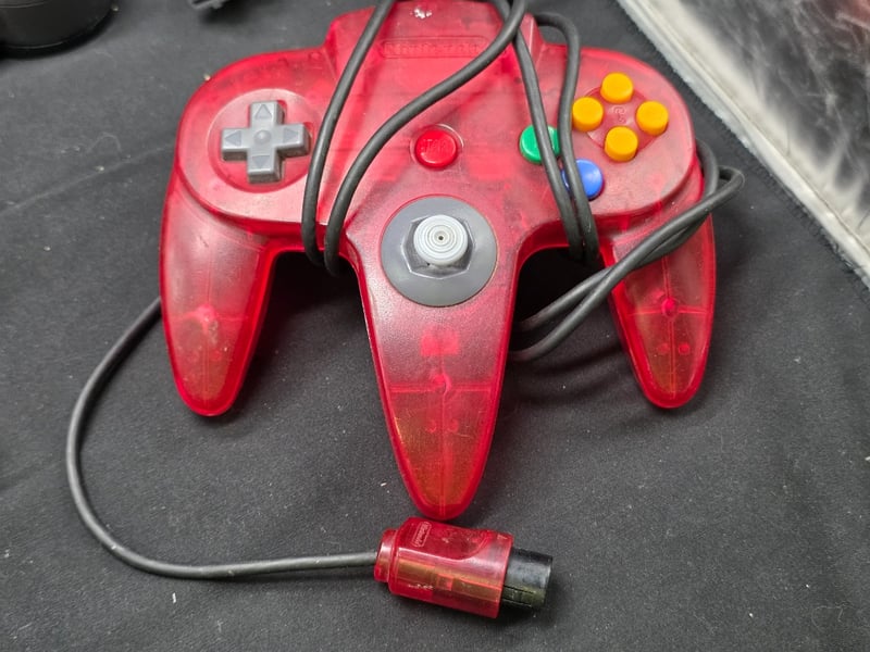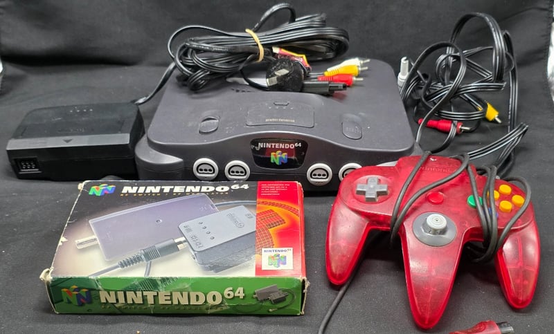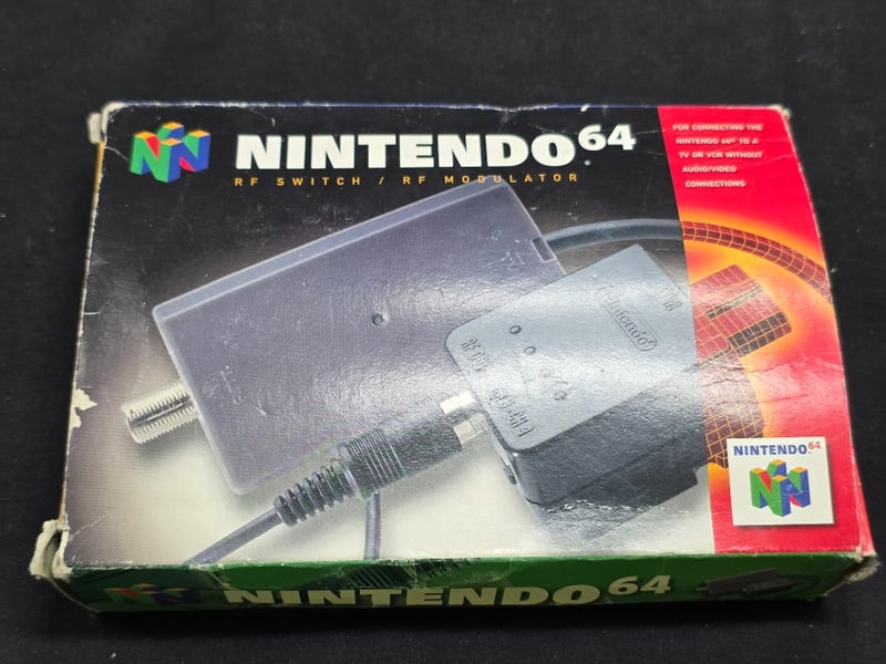 NINTENDO 64 WITH RED CONTROLLER AND RF SWITCH MODULATOR.