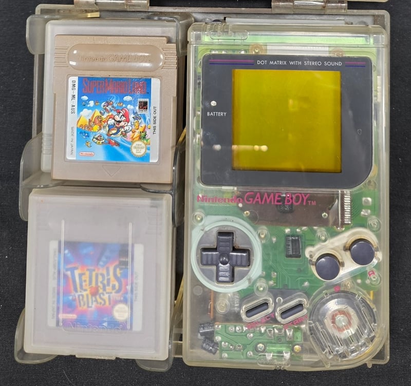 Clear Gameboy, Case, Super Mario Land, Game Boy Gallery, Tetris Blast, Migel Mansens World Championship Racing, Donkey Kong Land 2