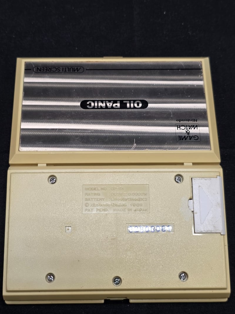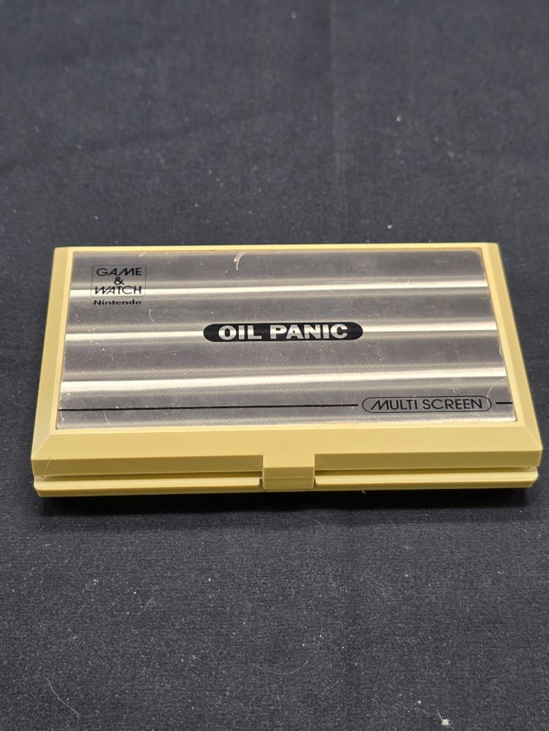NINTENDO GAME & WATCH OIL PANIC MULTI SCREEN HANDHELD Item Size: Height: 11cm, Width: 20cm, Depth: 8cm Vintage Nintendo Game & Watch Oil Panic Multi-Screen Handheld Game From The 1980S. Features Dual Lcd Screens With Oil-Themed Gameplay Mechanics. Cream-Coloured Clamshell Design With Left/Right Directional Controls And Game Selection Buttons. Unknown Working Condition Condition: Fair - Refer To Images 584564+5