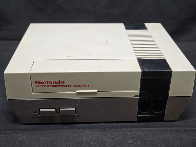 NINTENDO NES WITH TWO CONTROLLERS AND FOUR GAMES
