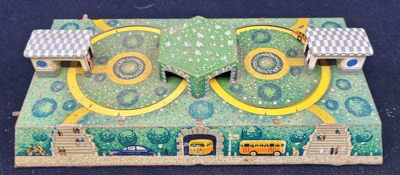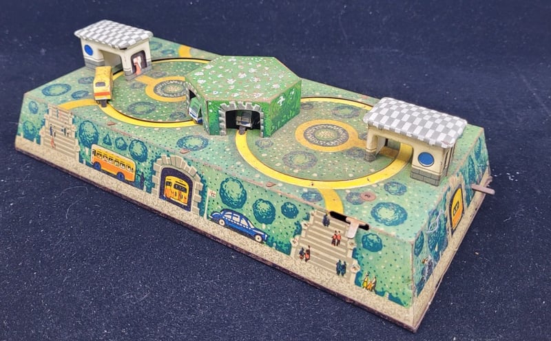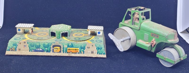 RUSSIAN TIN LITHO WIND UP BUS DEPOT, AVELING BARFORD ROAD ROLLERItem Size:Bus Depot: 5Cm H, 23Cm W, 11Cm DRoad Roller: 11Cm H 18Cm W, 9Cm DCondition: Good - Refer To Images582912+34