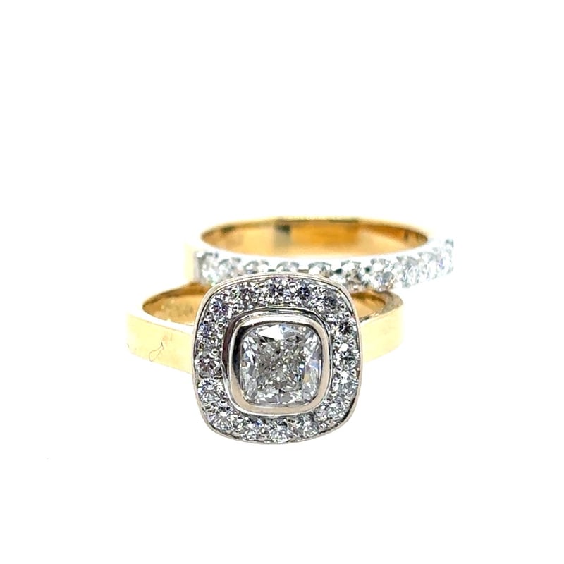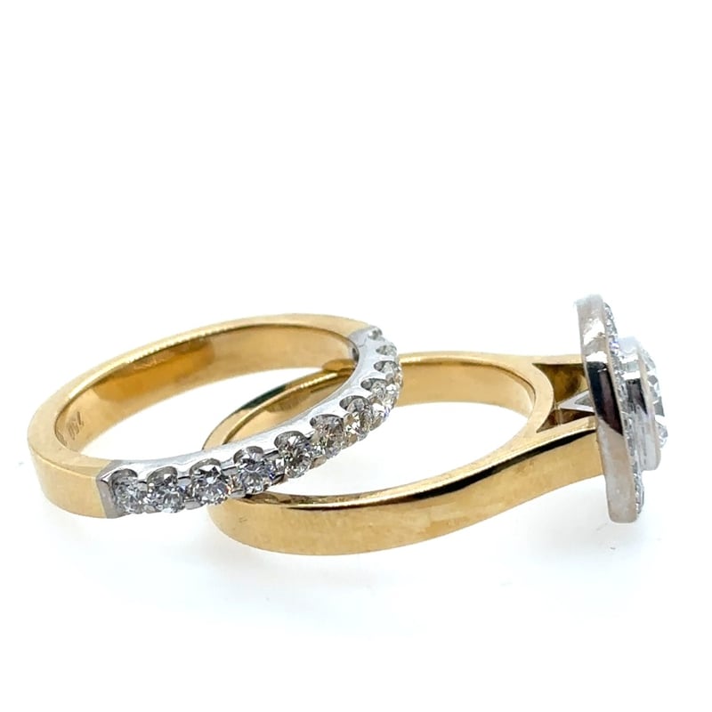 18CT YELLOW AND WHITE GOLD WEDDING RING SET