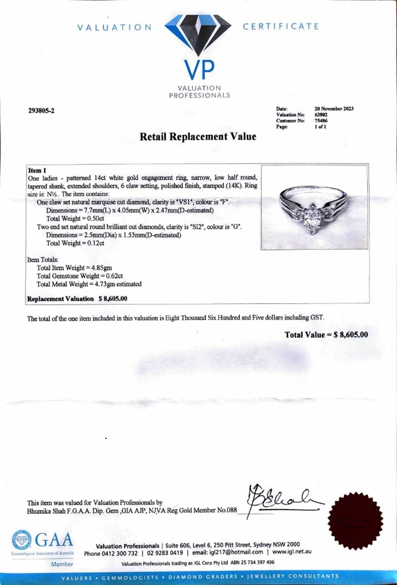 This valuation has been conducted by an independent third-party professional. The valuation amount is an assessment by the issuing valuer and does not reflect the auction value of the item.