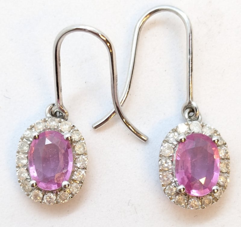 Includes Four-Claw Setting With Shepherd Hooks, Two Sapphires 1.61Ct Total Weight, Measuring 7 X 5Mm, Oval Cut, Medium Pink Colour, Moderate Inclusions Clarity, Thirty Two Diamonds, 0.39Ct, Measuring 1.3Mm, Round Brilliant Cut, H Colour, Si Clarity