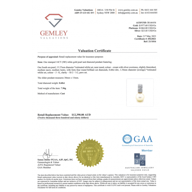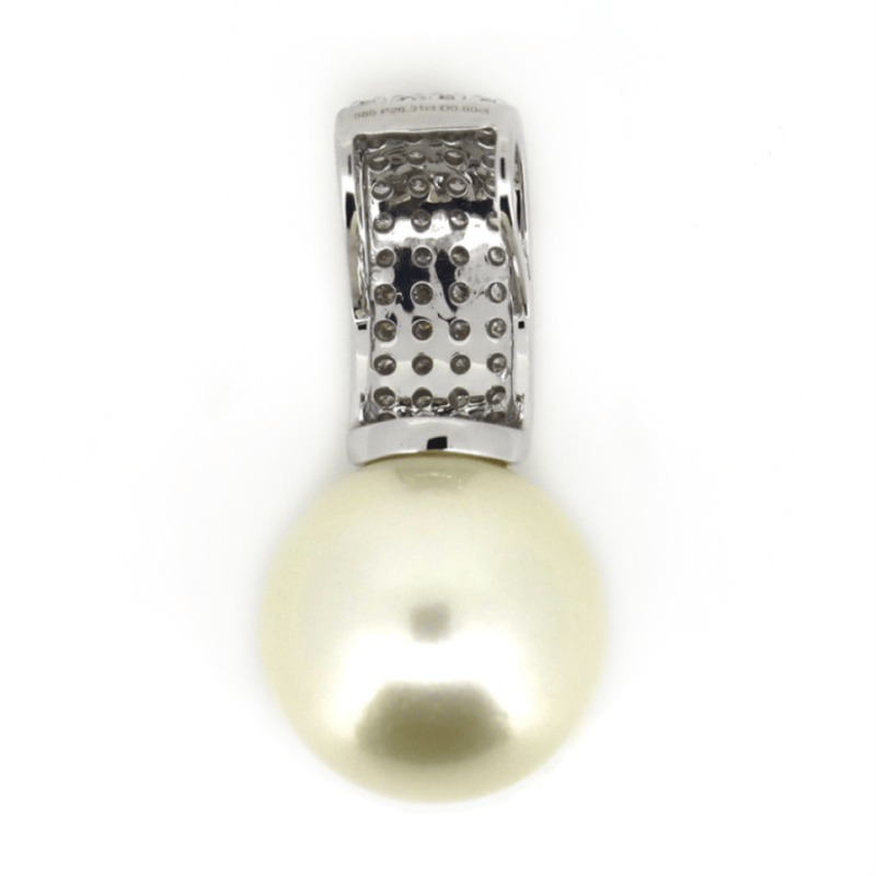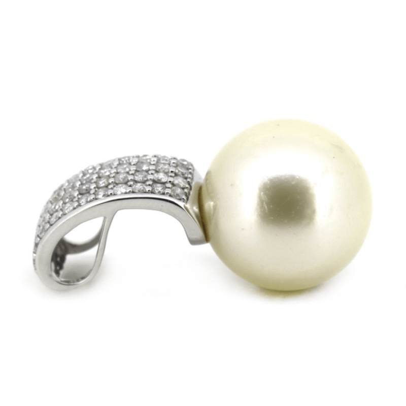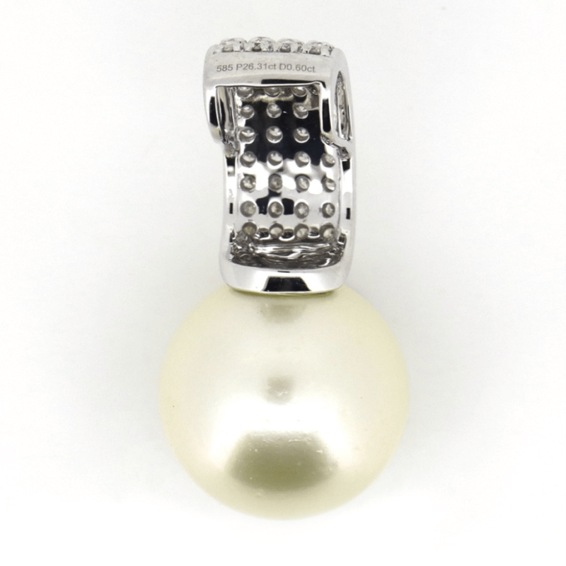 The Pendant Features, One Near Round, Cream With Silver Undertones, Medium Nacre, Cultured South Sea Pearl (15.37Mm Size, Medium Lustre, Slightly Blemished). Decorating The Drop Are, 44 Round Brilliant Cut, Diamonds (0.60Ct Tdw, J-K Colour, Si2-I2 Clarity), Pave Set.