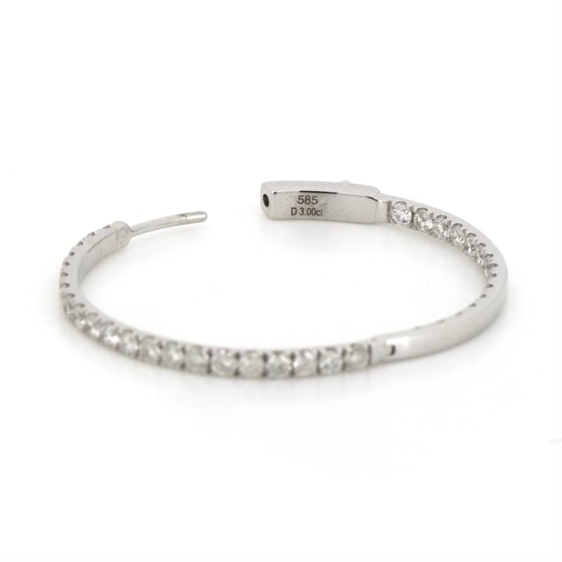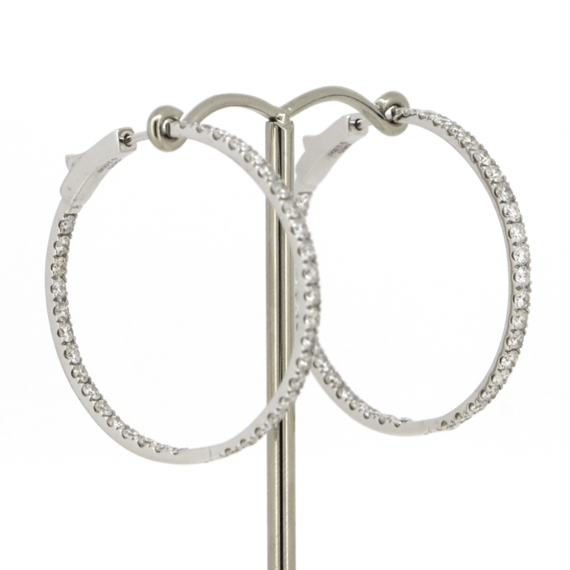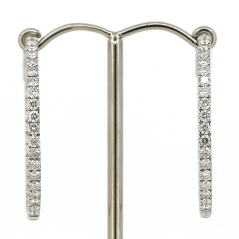 14K WHITE GOLD, 3.00CT TDW DIAMOND, HOOP EARRINGS.
