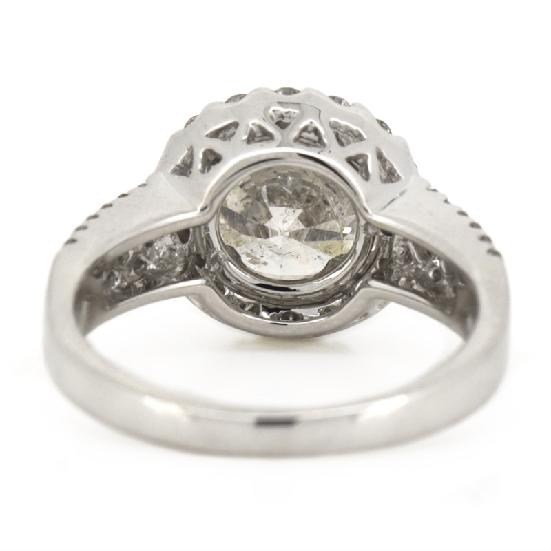 18K WHITE GOLD AND DIAMOND, HALO RING.