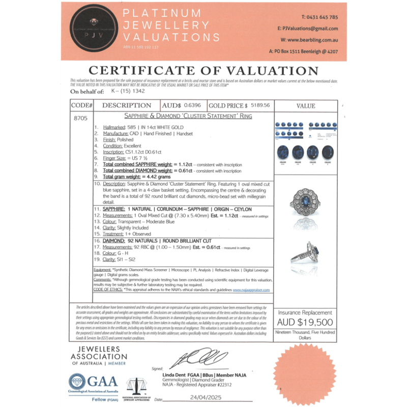This valuation has been conducted by an independent third-party professional. The valuation amount is an assessment by the issuing valuer and does not reflect the auction value of the item.