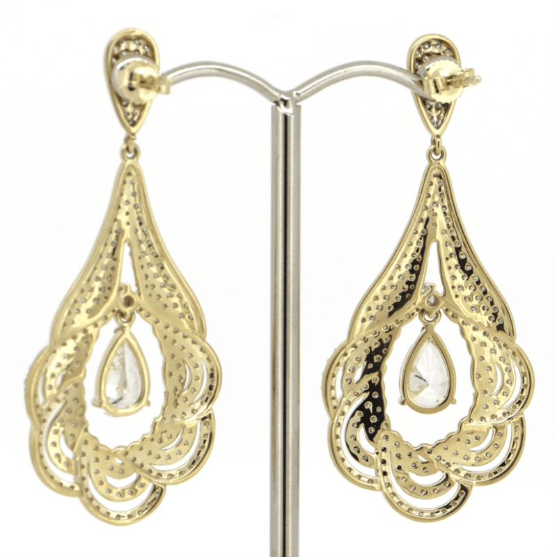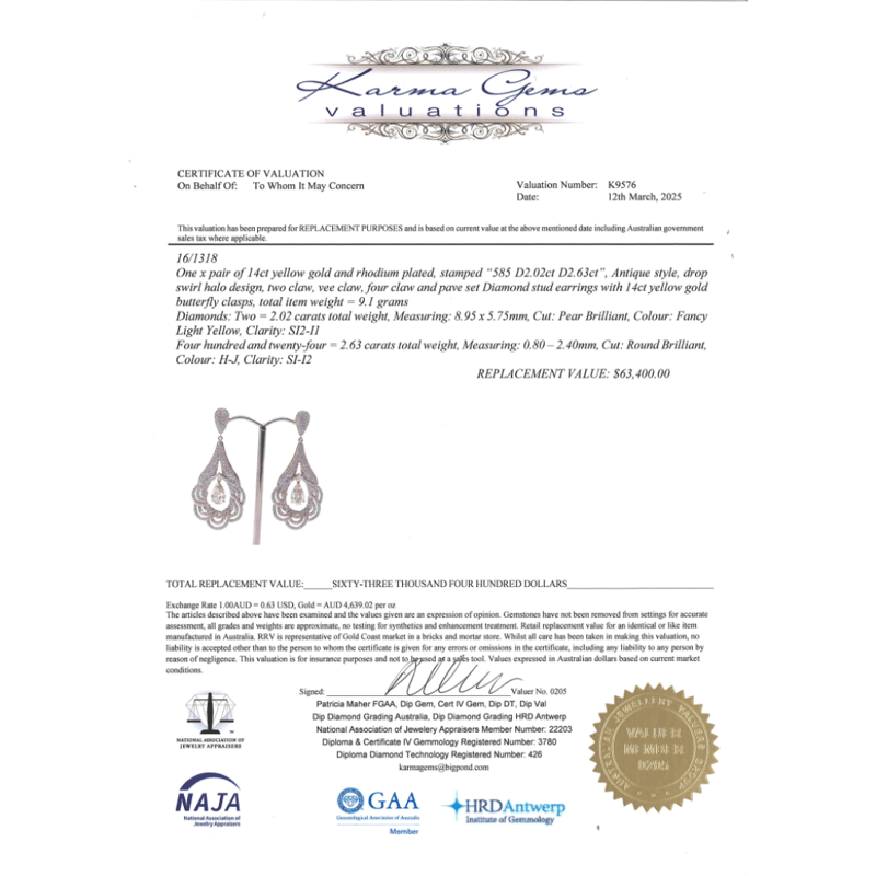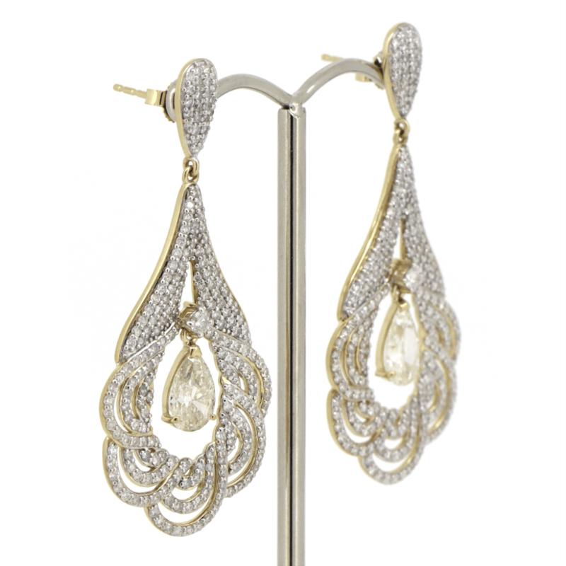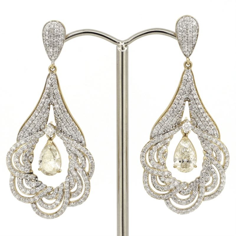 The Designs Feature, 2 Pear Brilliant Cut, Fancy Light Yellow, Diamonds (2.02Ct Tdw, Si2-I1 Clarity), Vee Claw Set. Encompassing The Design Are, 422 Round Brilliant Cut, Diamonds (2.63Ct Tdw, H-J Colour, Si-I2 Clarity), Claw/Pave Set. Earrings Feature 14K White Gold Butterfly Clasps.