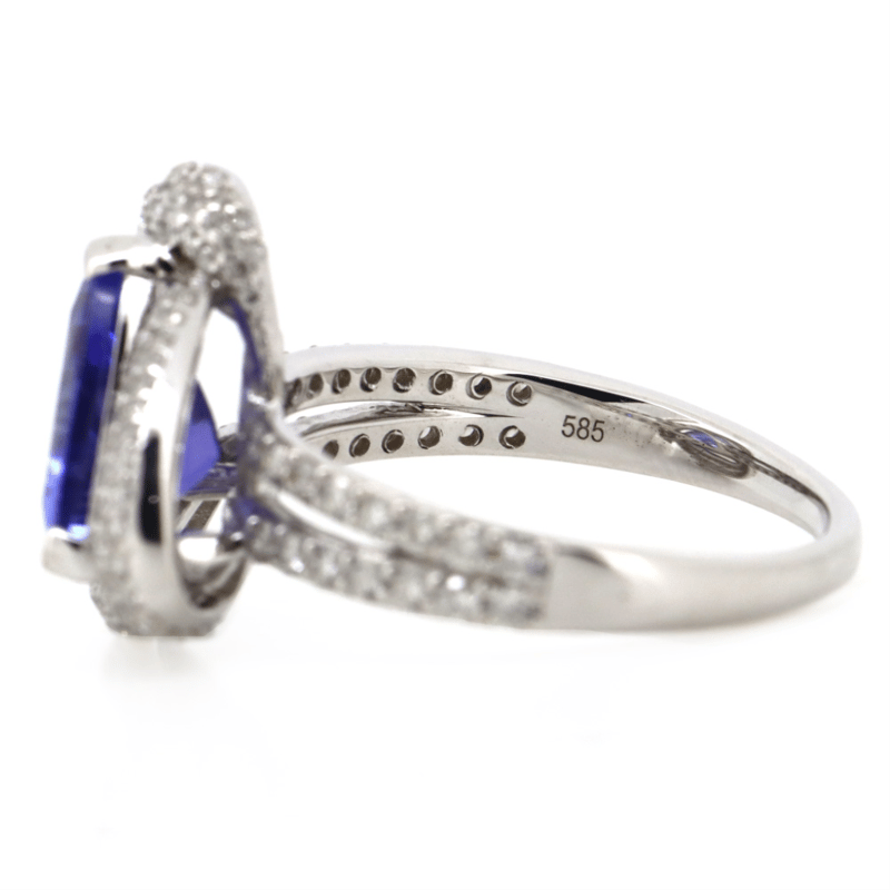 14K WHITE GOLD, TANZANITE AND DIAMOND, COCKTAIL RING.