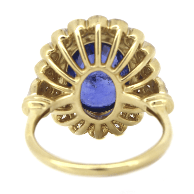 14K YELLOW GOLD, 6.62CT BLUE CEYLON SAPPHIRE AND DIAMOND, COCKTAIL RING.