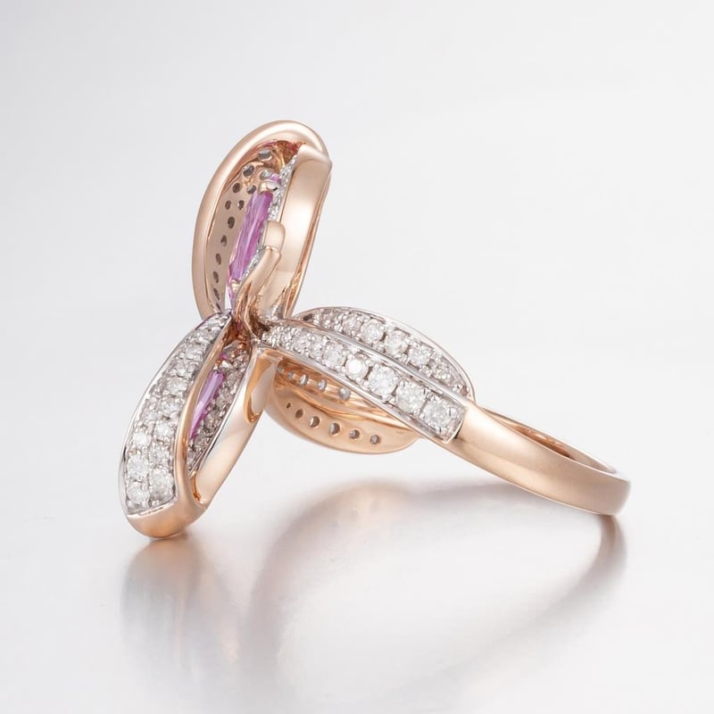 14CT ROSE GOLD PINK CEYLON SAPPHIRE AND DIAMOND COCKTAIL RING