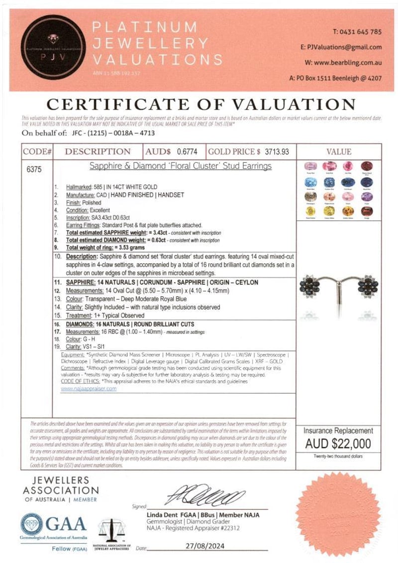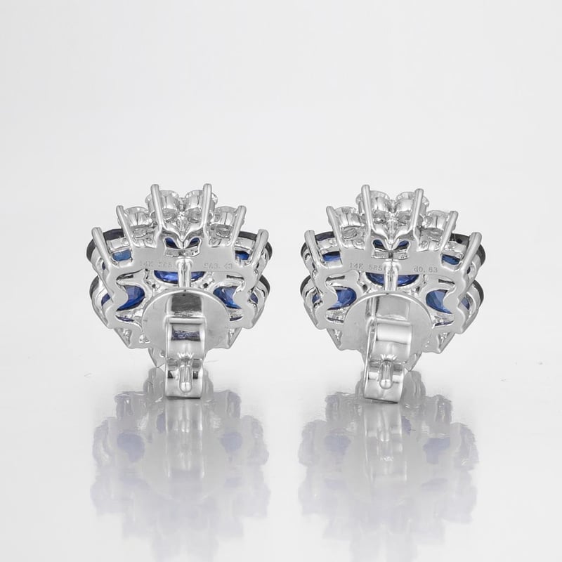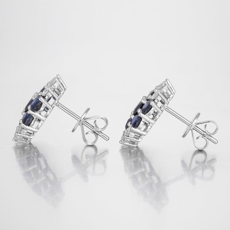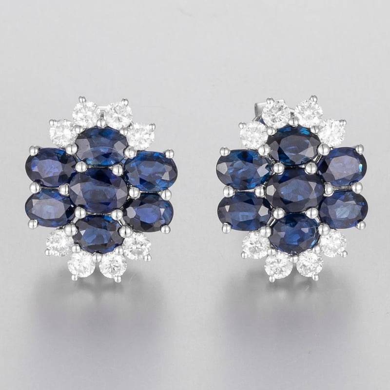 14CT WHITE GOLD CEYLON SAPPHIRE AND DIAMOND CLUSTER STUD EARRINGS