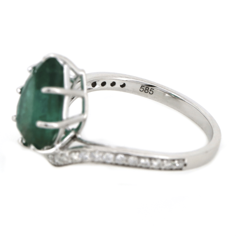14K WHITE GOLD, EMERALD AND DIAMOND, RING.