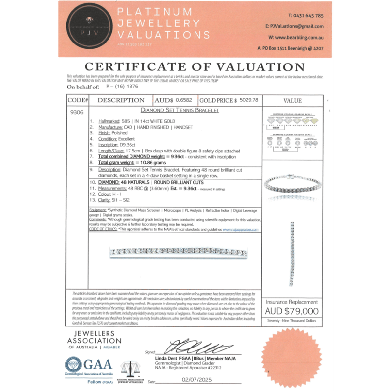 The Design Features, 48 Round Brilliant Cut, Diamonds (9.36Ct Tdw, H-I Colour, Si1-Si2 Clarity), 4 Claw Set. The Bracelet Has A Box Lock Clasp. Bracelet Length Is 17.5Cm.
