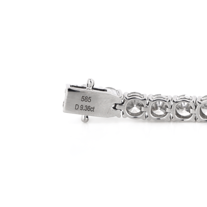 14K WHITE GOLD AND 9.36CT TDW DIAMOND, TENNIS BRACELET.