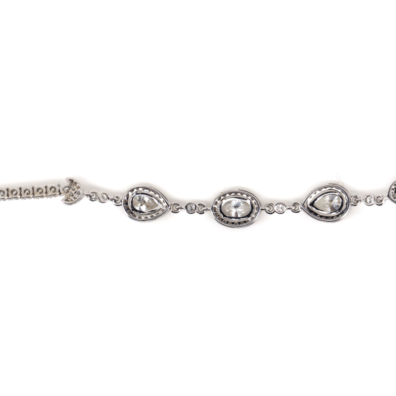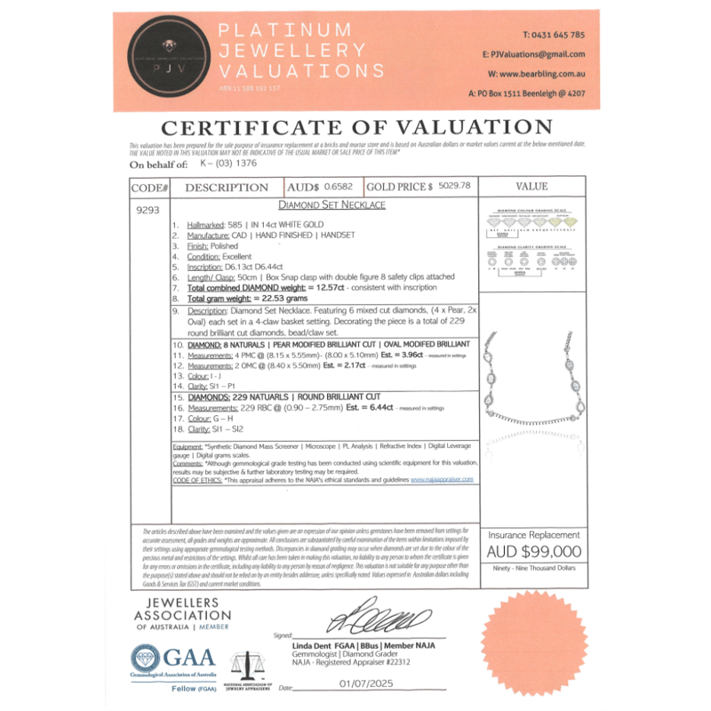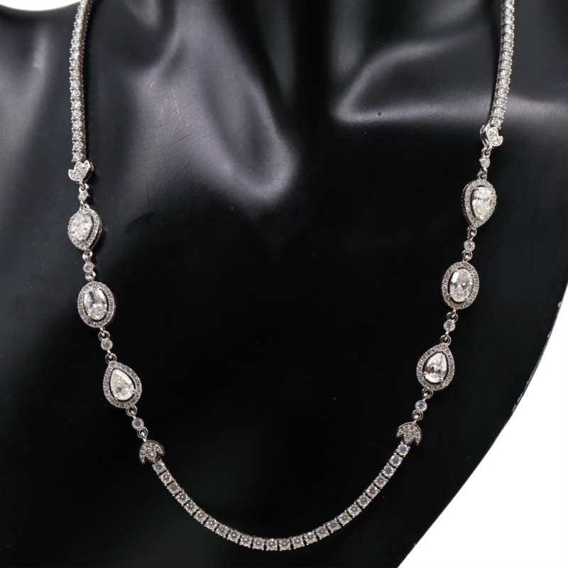 The Design Features, 4 Pear Modified Brilliant Cut, Diamonds (3.96Ct Tdw, I-J Colour, Si1-P1 Clarity), 4 Claw Basket Set. Additionally, 2 Oval Modified Brilliant Cut, Diamonds (2.17Ct Tdw, I-J Colour, Si1-P1 Clarity), 4 Claw Basket Set. Encompassing The Design Are, 229 Round Brilliant Cut, Diamonds (6.44Ct Tdw, G-H Colour, Si1-Si2 Clarity), Bead/Claw Set. Length Of Necklace Is 50Cm.
