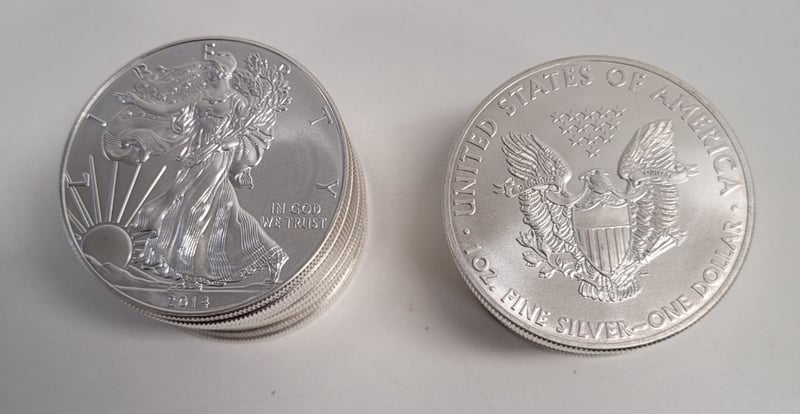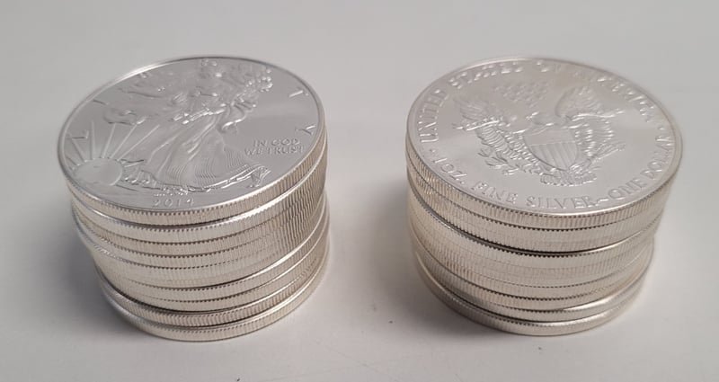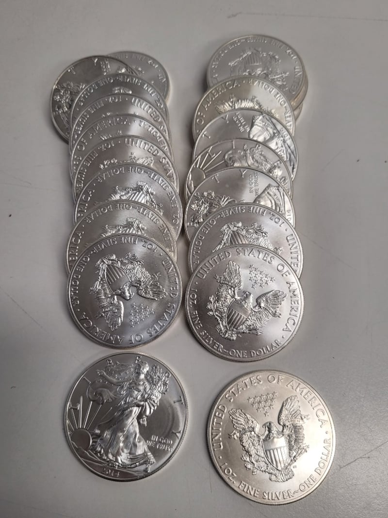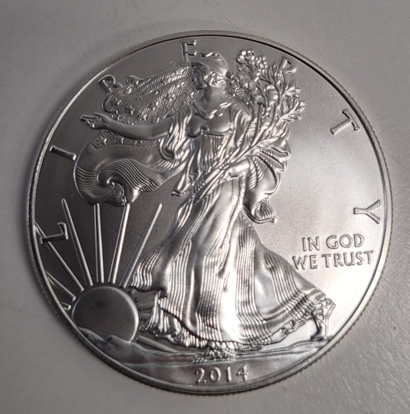 20 Uncirculated 2014, 1Oz American Eagle Silver Dollars, With Walking Liberty Shown On The Reverse Side.