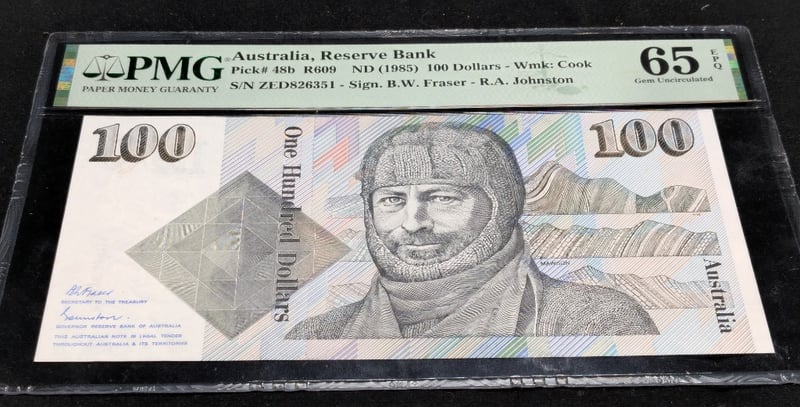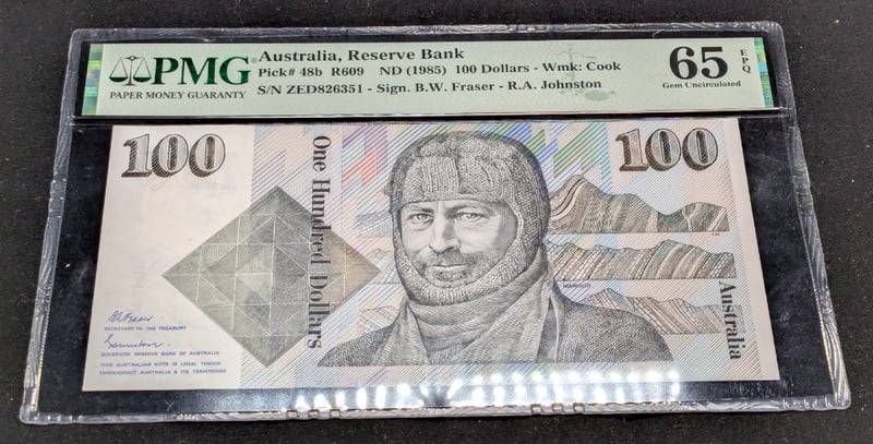 AUSTRALIAN ONE HUNDRED DOLLAR BANK NOTE, PMG GRADED 65