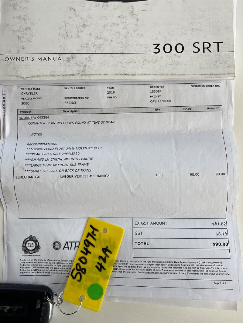 2018 Chrysler SRT core Year: 2018 Make: Chrysler Model: SRT core Body: 4-Door Sedan Drive Type: Rear wheel drive Odometer: Indicating 182,795 Kilometres Engine: 6.4 V8 Petrol Transmission: Automatic Colour: White Seats: 5 Description/extras: Air Conditioning, Power windows, SRS, Alloy wheels, AUX / USB, Reverse camera, Central locking. Price Guide - $40,700 - $45,900 (Based on Unmodified Vehicle) VIN: 2C3CCAWJ8JH280231 ENG No: JH280231 (Key #42A Marple) Lloyd's stock #580497+1 #PCV
