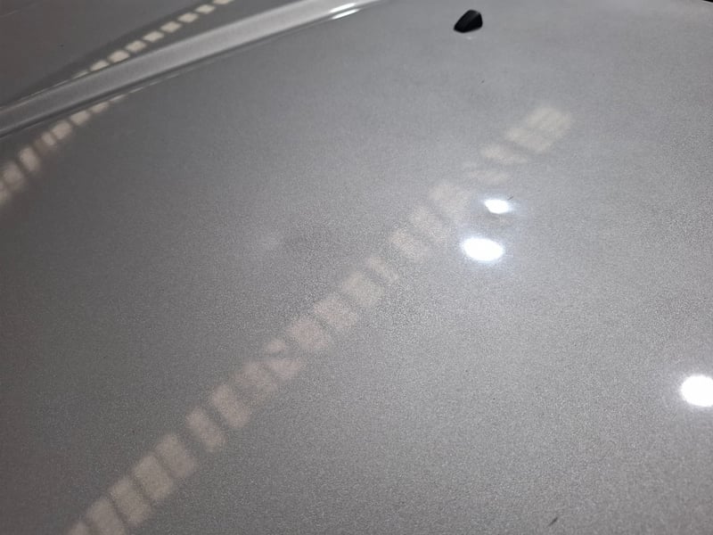 Impact dent to front bumper.