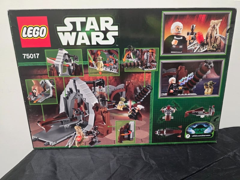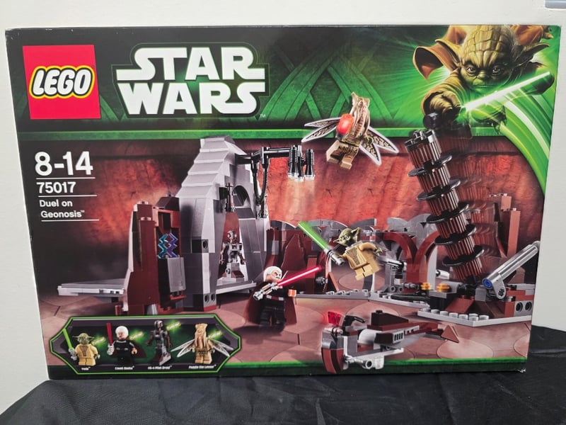 LEGO STAR WARS 75017 DUEL ON GEONOSIS SETItem Size: Height: 30cm, Width: 50cm, Depth: 20cm, Weight: 0.2KgLego Star Wars Set 75017 "Duel On Geonosis" Featuring Detailed Minifigures Including Yoda, Count Dooku, And Anakin Skywalker. Includes Modular Arena Structure With Collapsible Platform, Rotating Combat Elements, Distinctive Spacecraft, And Integrated Building Systems. Original Packaging Displays Comprehensive Product Imagery And Specifications For Ages 8-14.Condition: Good - Refer To Images584518+107