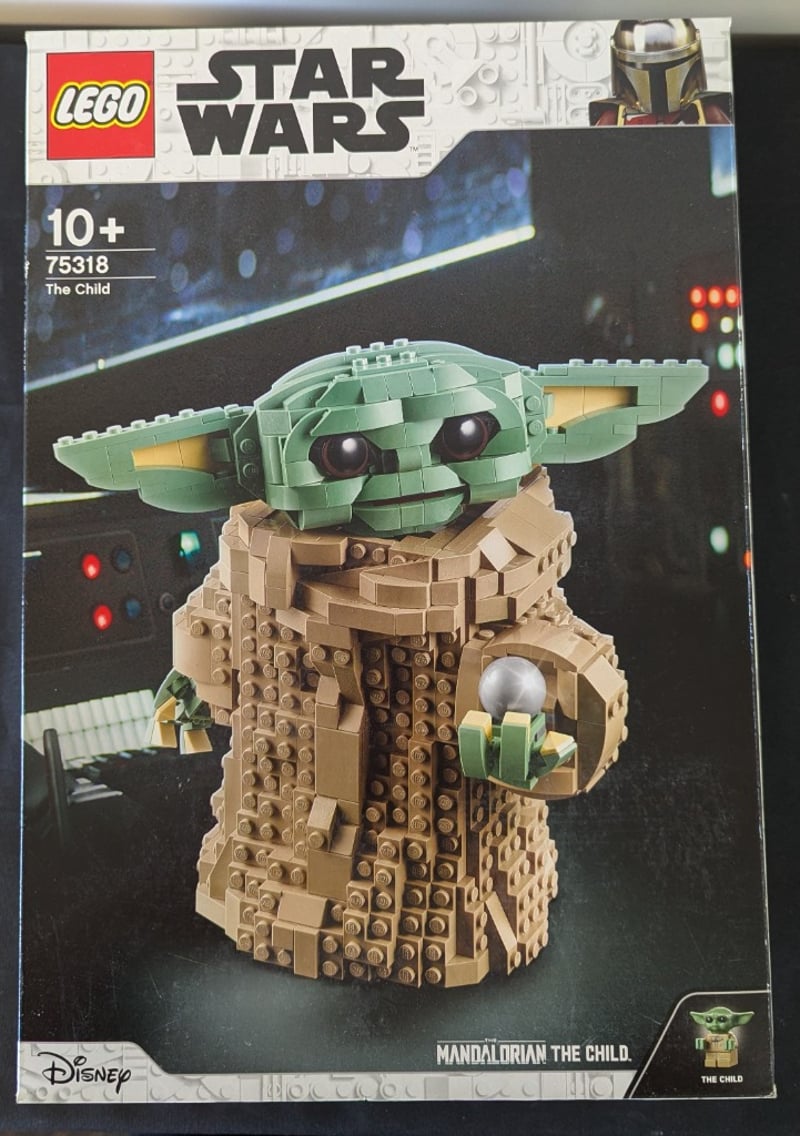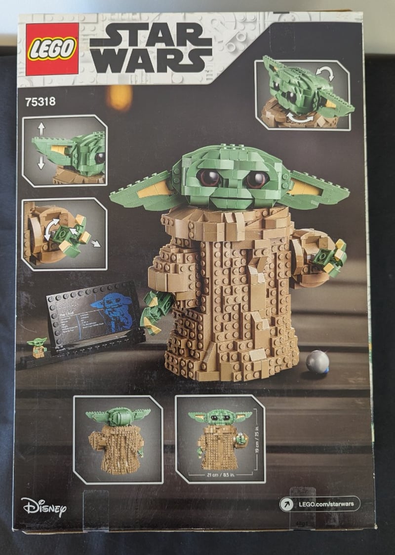 Lego Star Wars Set 75318 Featuring "The Child" (Grogu) From The Mandalorian Series. Buildable Figure With Poseable Head And Ears, Detailed Tan Robed Torso With Textured Brick Construction, Articulated Green Head With Oversized Dark Eyes, Includes Minuscule Accessories. Rated For Ages 10+. Complete With Instruction Manual And Original Packaging Displaying Product Imagery And Disney Branding.