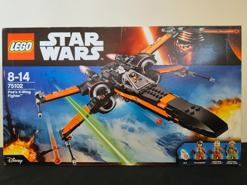 Vintage Lego Star Wars Set 75102 Featuring Poe Dameron'S Iconic X-Wing Fighter From The Force Awakens. Complete With Minifigures Including Poe Dameron, Resistance X-Wing Pilot, And Resistance Ground Crew. The Buildable Spacecraft Features Opening Cockpit, Deployable S-Foils, And Retractable Landing Gear. Original Packaging Shows Minimal Wear With All Original Artwork And Graphics Intact. Includes Instruction Manual And All Building Elements Visible On Reverse Packaging Indicating Comprehensive C