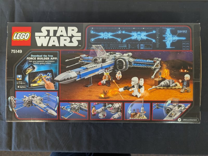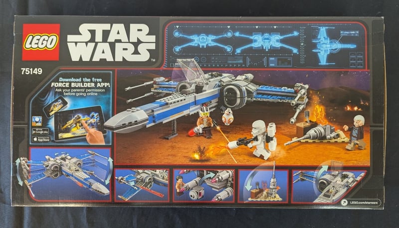 LEGO STAR WARS 75149 RESISTANCE X-WING FIGHTER SETLego Star Wars Set 75149 Featuring A Buildable Resistance X-Wing Fighter With Blue And White Colour Scheme, Includes Minifigures With Weapons, Detachable Wings, Landing Gear, Cockpit Details, And Themed Accessories. Includes Force Builder App Compatibility. Displayed In Original Retail Packaging With Product Imagery And Construction Diagrams Visible.Condition: Good - Refer To Images584518+269