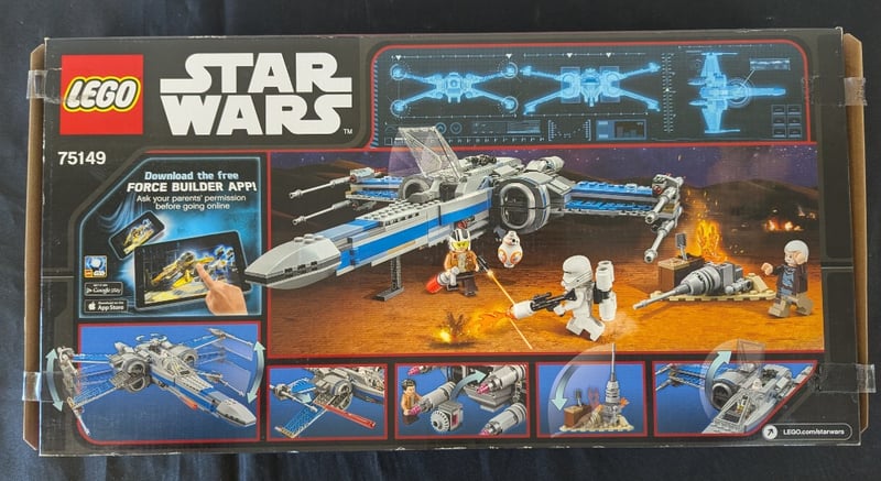Lego Star Wars Set 75149 Featuring The Resistance X-Wing Fighter From The Force Awakens. Includes Buildable Starfighter With Opening Cockpit, S-Foils, And Detailed Weaponry. Contains Four Minifigures
