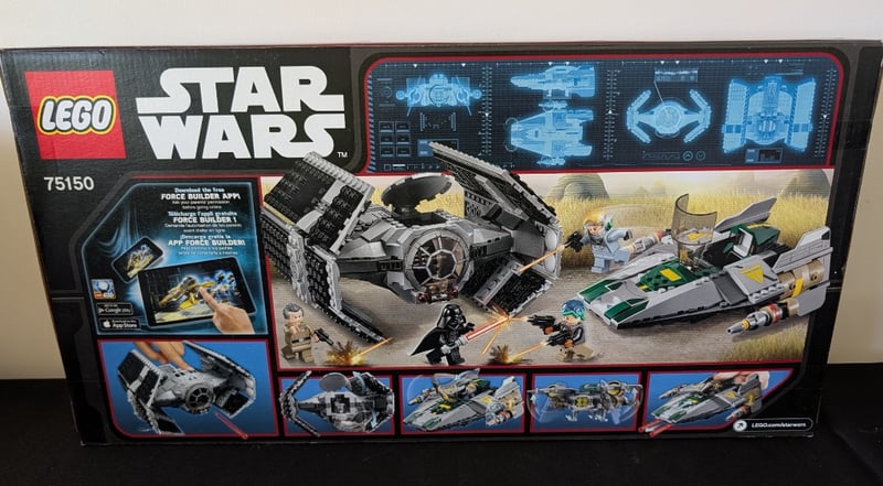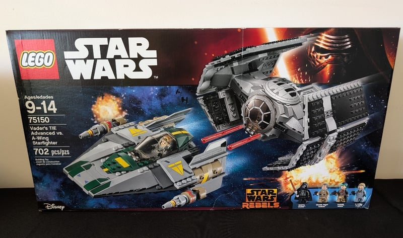 Lego Star Wars Set 75150 Featuring Vader'S Tie Advanced Starfighter And Rebel A-Wing Starfighter With 702 Pieces. Includes Four Minifigures And Force Builder App Compatibility. Original Packaging With Instruction Manual.