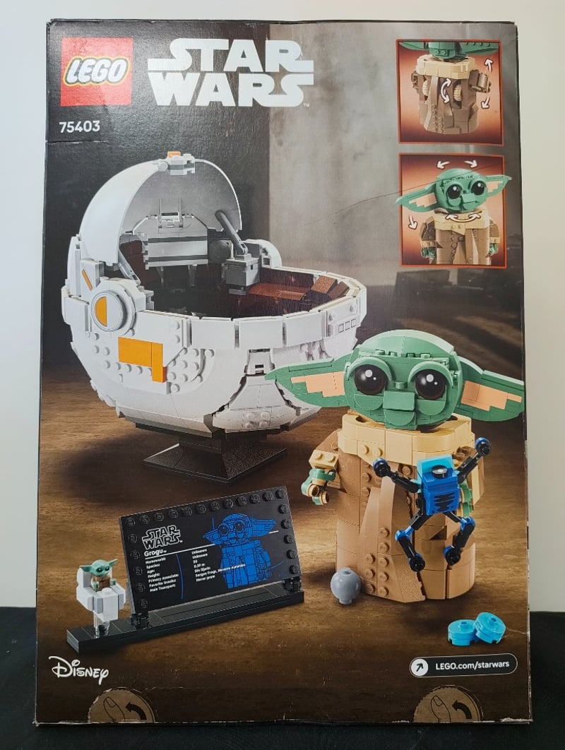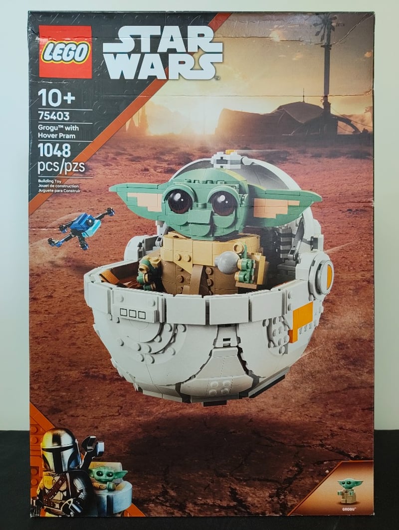 Lego Star Wars Set 75403 Featuring Grogu (Baby Yoda) With Hover Pram. This 1048-Piece Building Toy Includes A Detailed Spherical Pram With Opening Pod Design, Poseable Grogu Minifigure With Articulated Ears, A Mandalorian Minifigure, And A Blue Hovering Droid Accessory. Includes Instruction Booklet And Decorative Display Nameplate. Suitable For Ages 10+. Factory Sealed In Original Packaging With Minor Box Wear.