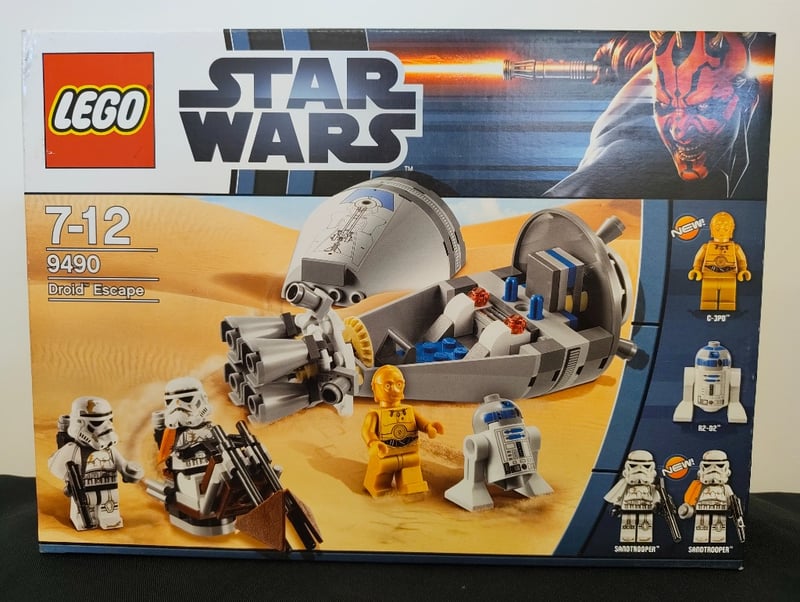 LEGO STAR WARS 9490 DROID ESCAPE SET - SEALED BOXItem Size: Height: 28cm, Width: 38cm, Depth: 12cm, Weight: 3KgLego Star Wars Set 9490 "Droid Escape" Featuring The Iconic Escape Pod With Opening Hatch, Minifigures Including C-3Po, R2-D2, Two Sandtroopers, And Motorized Wheeled Droid Transport. Original Sealed Retail Packaging With Age-Appropriate Assembly Rating 7-12 Years.Condition: Good - Refer To Images584518+48