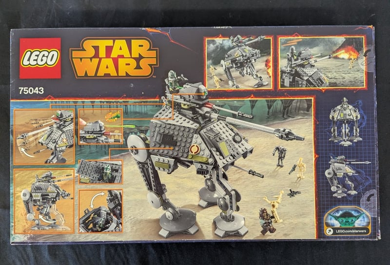 LEGO STAR WARS AT-AP WALKER SET 75043Lego Star Wars Set 75043 Featuring The At-Ap (All Terrain Attack Pod) Walker. This Buildable Vehicle Includes Opening Cockpit, Rotating Turret With Spring-Loaded Shooter Mechanism, Articulated Legs For Poseable Display, And Detachable Missile Accessories. Includes Five MinifiguresCondition: Fair - Refer To Images584518+261