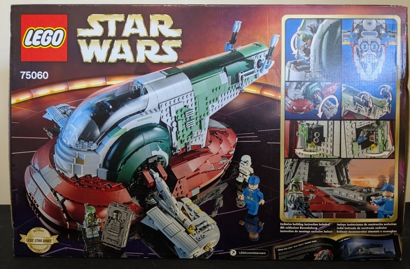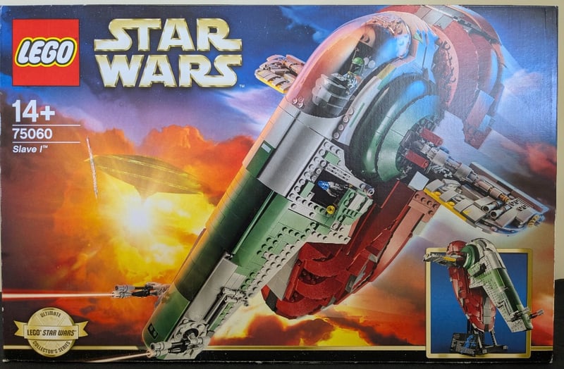 LEGO STAR WARS SLAVE I COLLECTIBLE MODEL SET 75060 (ULTIMATE COLLECTOR SERIES)Authentic Lego Star Wars Set 75060 Featuring Boba Fett'S Iconic Slave I Starship. This Ultimate Collector Series Model Showcases The Vessel'S Distinctive Curved Hull Design In White, Green, And Red Brick Construction With Detailed Interior Cockpit And Cargo Bay Sections. Includes Minifigures. Original Retail Packaging With Printed Box Art Depicting The Ship In Flight. Set Designed For Ages 14+. Complete With Instruction Manual Visible In Secondary Image. Features Intricate Lego Engineering WithCondition: Good - Refer To Images584518+250